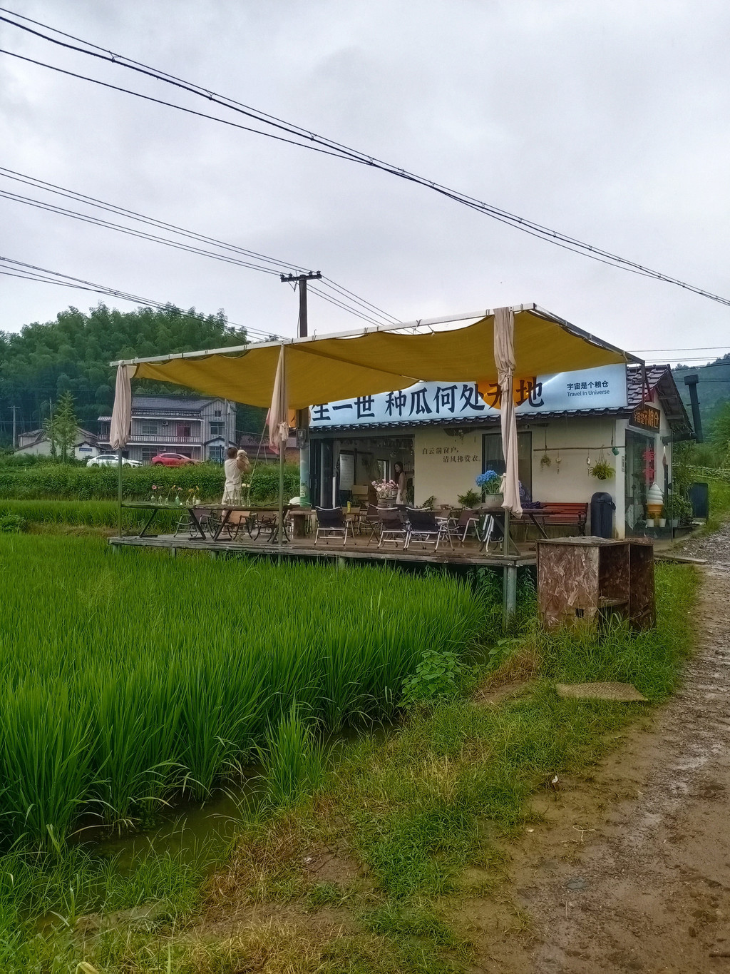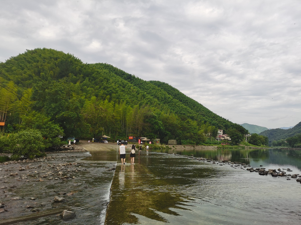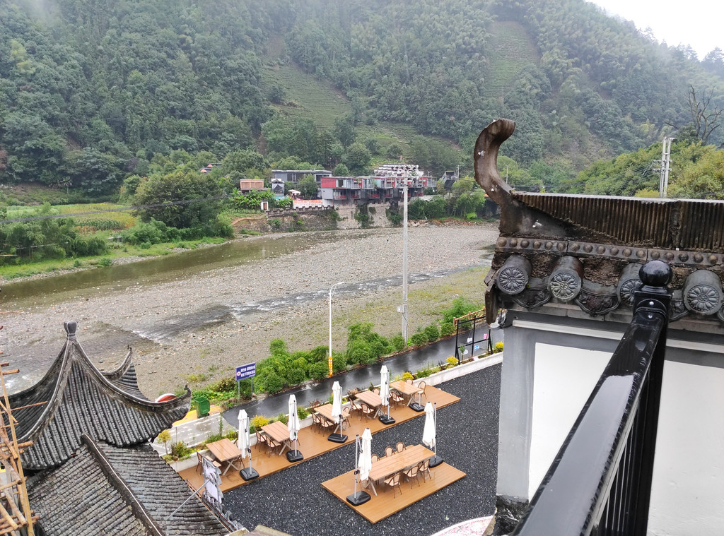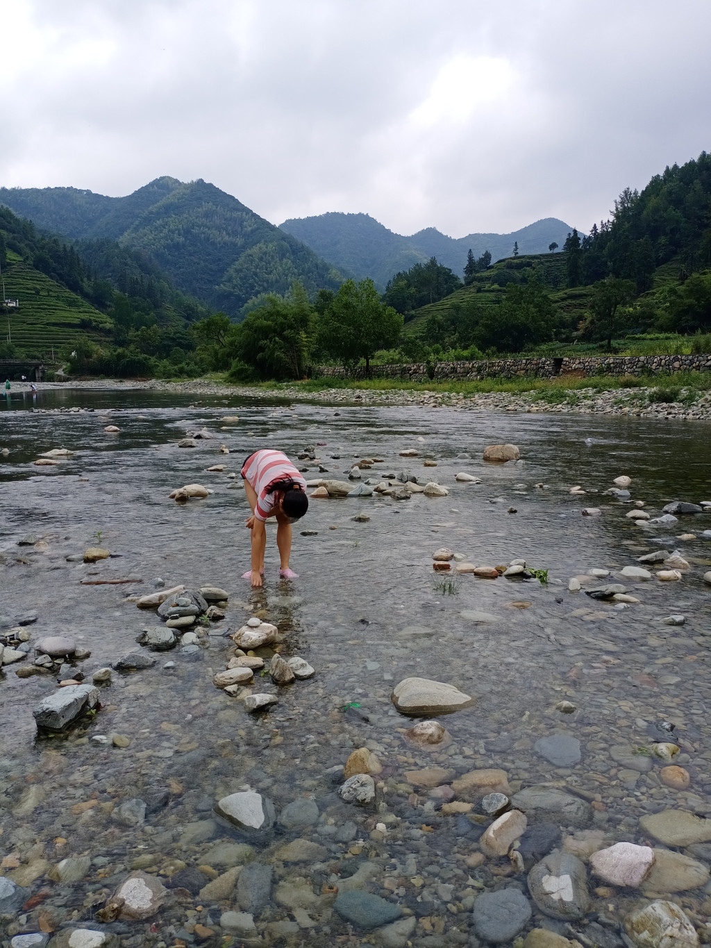 休整完,继续出发,前往今晚的住宿地,休宁县黄山脚下蓝田镇,离黄山和宏村都很近,这个地方在山清水秀的三棵树,前有山后有水,一点也不喧闹,适合玩水,门口就有河滩。
