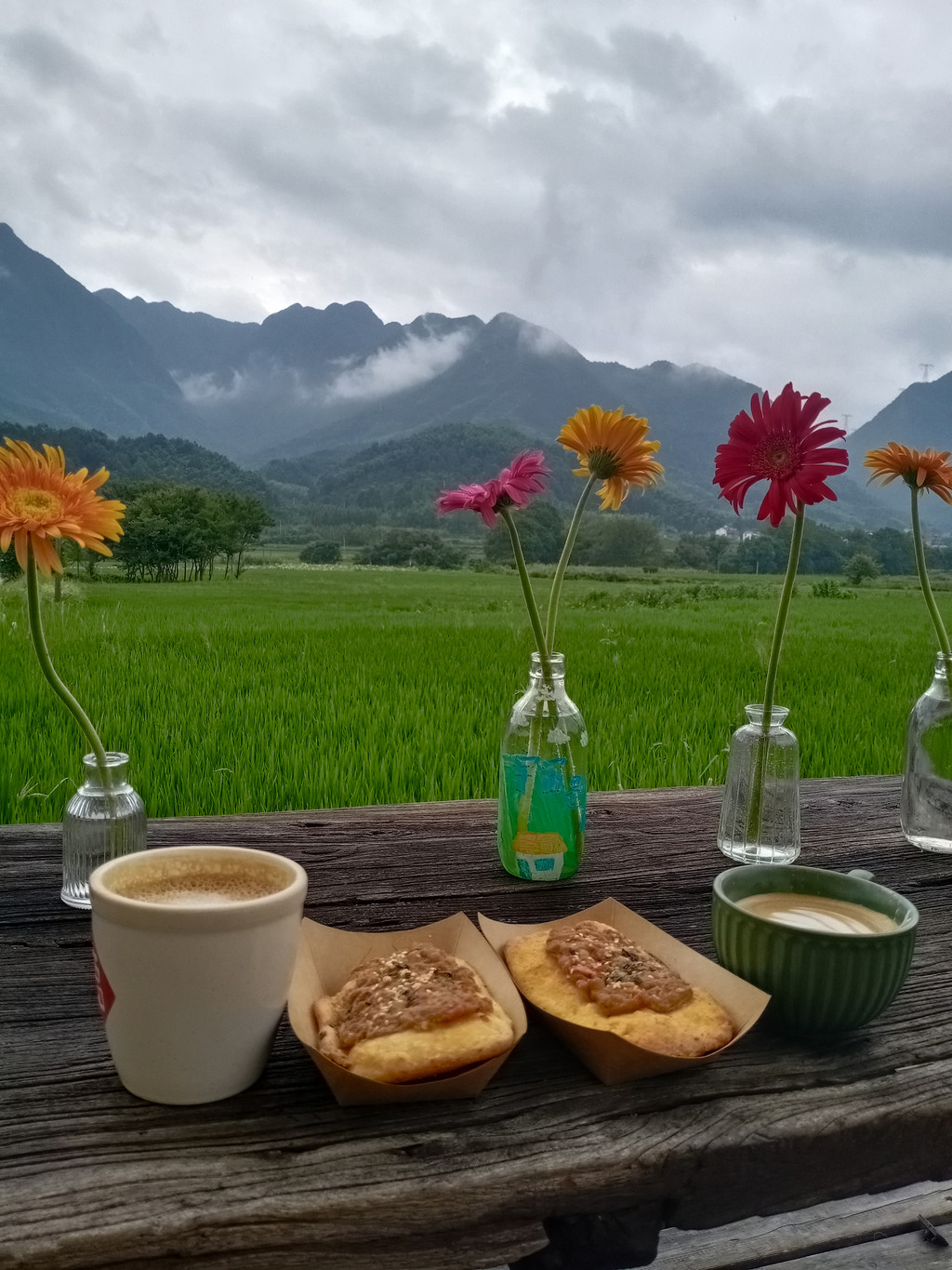 这个咖啡馆在一片山谷里,离六道湾车程30分钟,到的时候,天空飘的小雨,风景不错,适合小憩。