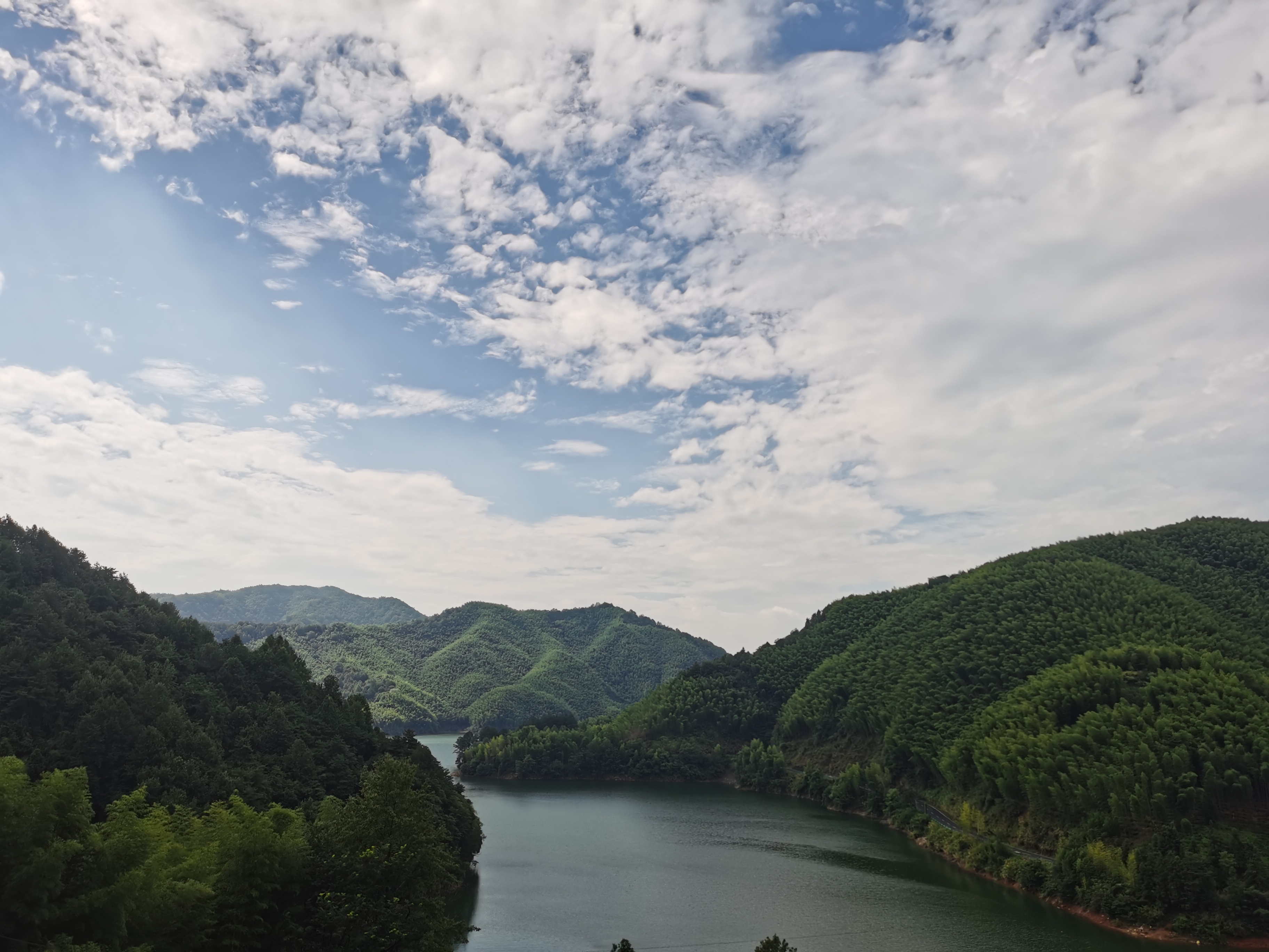 皖南川藏线,就是安徽省道S345宁国到泾县段,沿途自然景观,独具皖南山水之精华,青山连绵,偶有水库辽阔。东入口打完卡,第一个景点,储家滩(云深不知处咖啡店)。