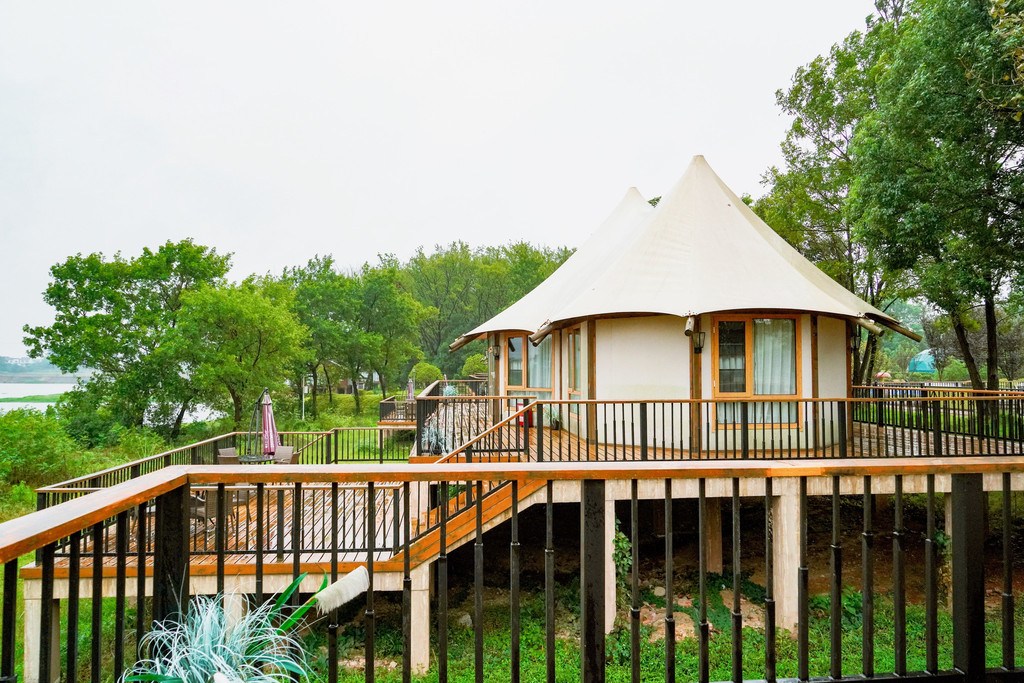 营地内有15间树屋,5间木屋,4间野奢帐篷,5间观星帐篷,5间房车花园酒店,
