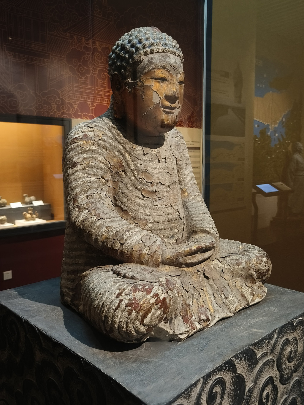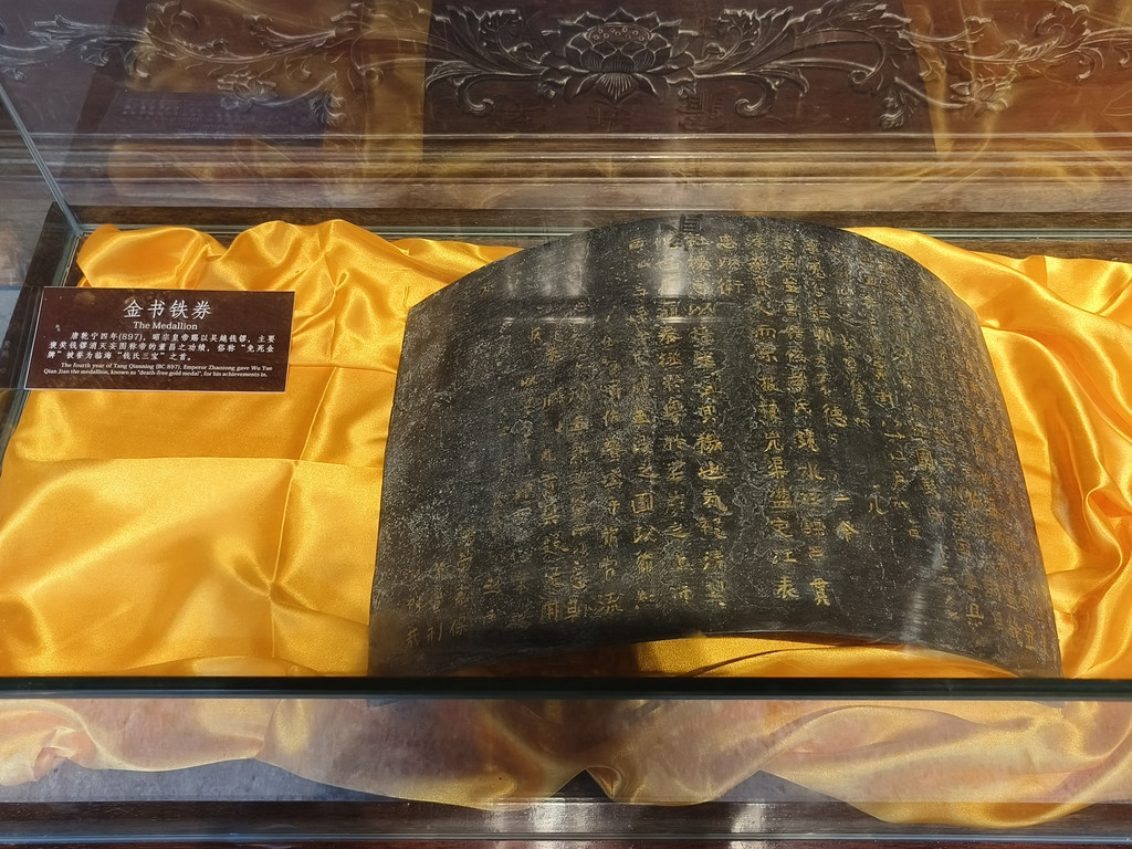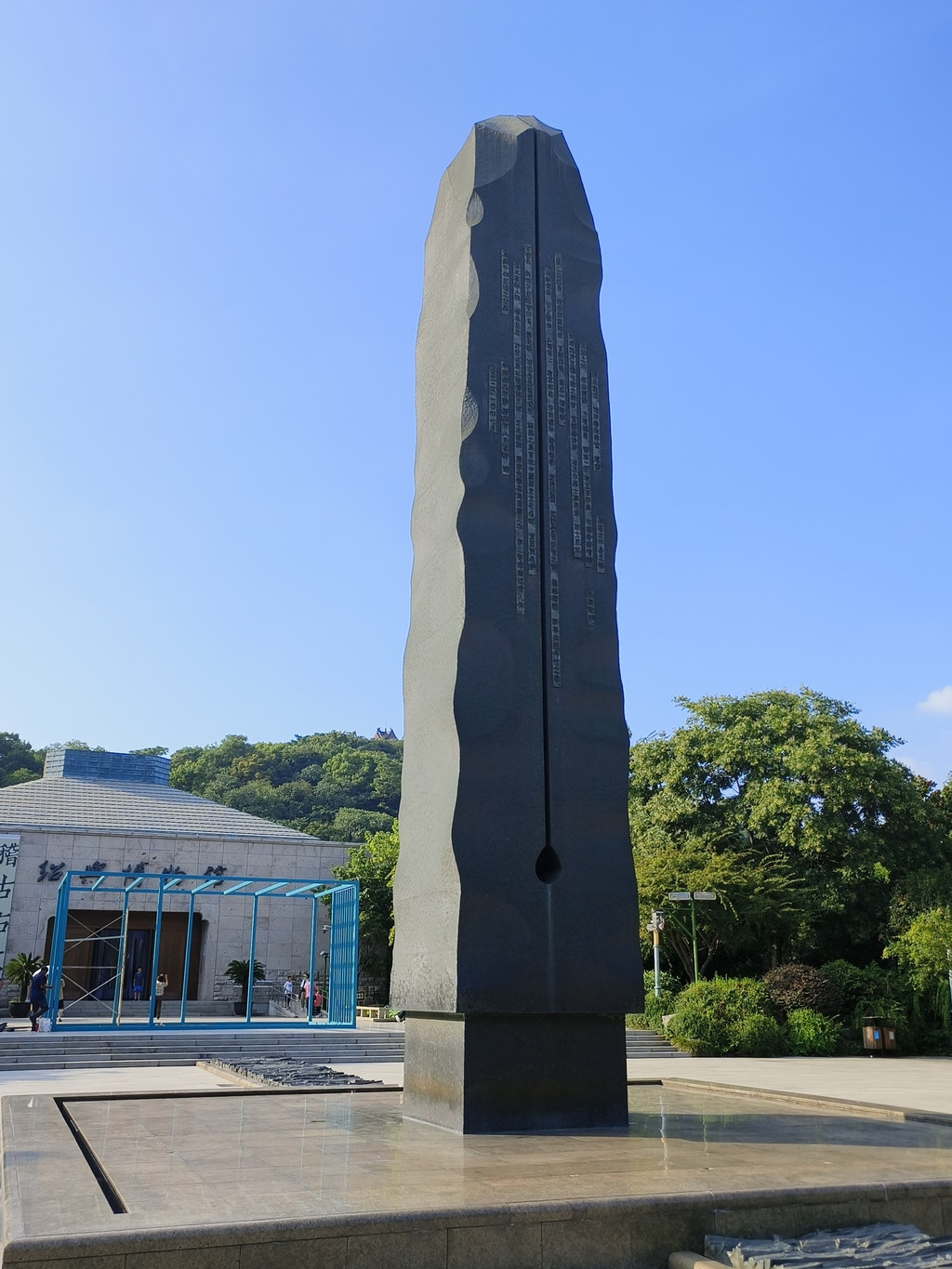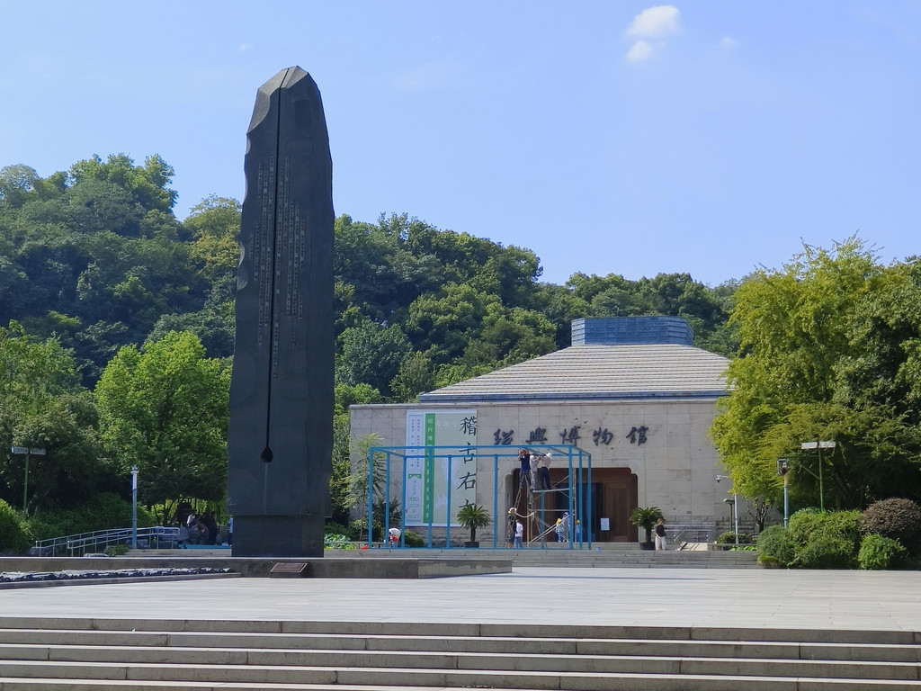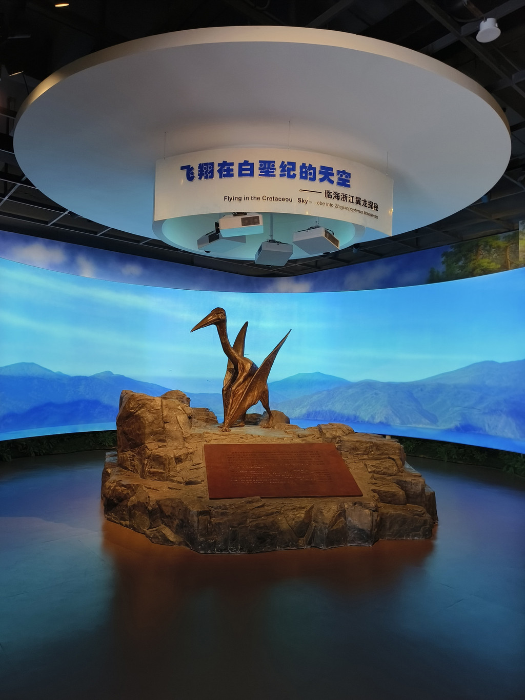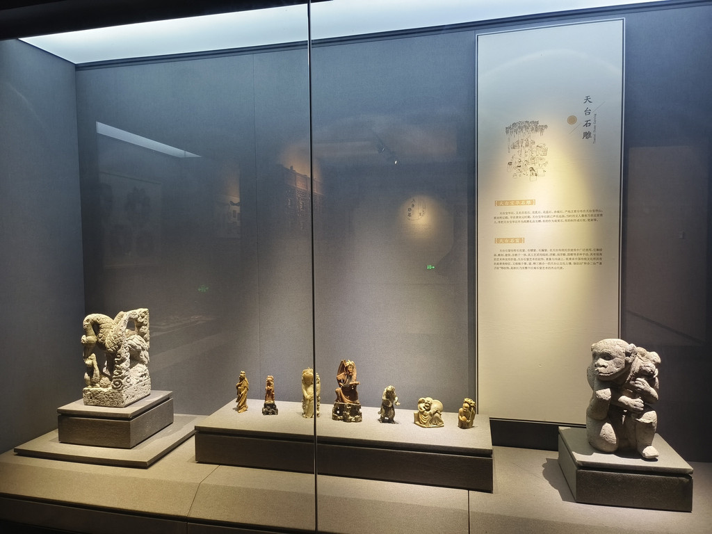 天台博物馆与国清寺相距1.2千米,就顺路看了一下。博物馆设有神秀天台、名城天台、家在天台、天台雅集、回到白垩纪等展区,展现浙东名邑“十地”之韵:佛教天台宗发源地、道教南宗创立地、五百罗汉应化地、济公活佛出生地、刘阮桃源遇仙地、唐诗之路目的地、羲之书法悟道地、霞客游记开篇地、诗人寒山隐居地、和合文化发祥地。馆内有许多佛教文物,如隋塔佛像砖、宋传教寺石刻造像、宋青铜三足鸟、五代金涂塔、国家级非遗“干漆夹苎”造像等,还有新石器时期的石矛、石斧、晋青瓷谷仓罐等珍贵文物。天台出土的恐龙新种骨化石、世界上最大的恐龙蛋化石(张氏巨型长形恐龙蛋)等古生物标本富有地方特色。镇馆之宝有唐“大中七年”铭茶碾、宋宝华石雕龙虎对峙石璧、清乾隆年间“西湖全景”十二屏刻漆寿屏等。