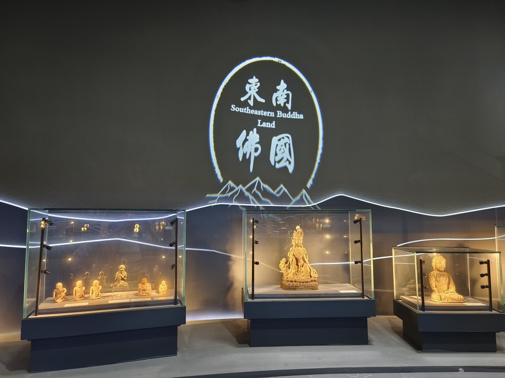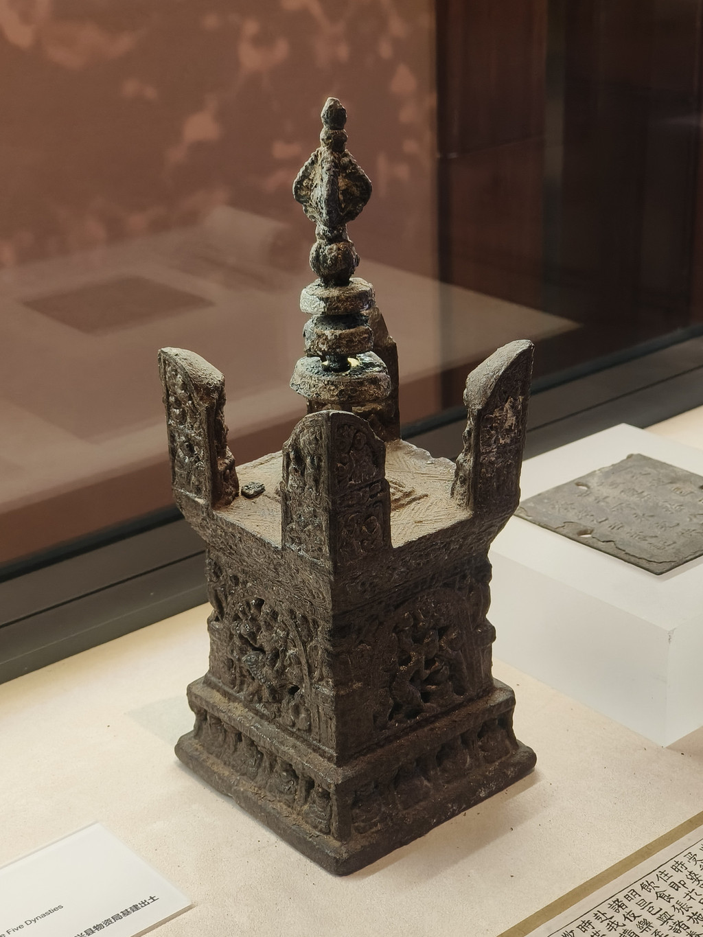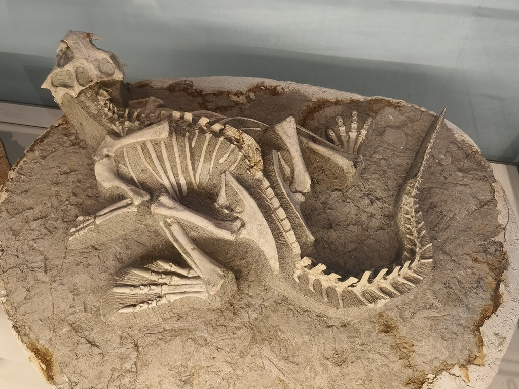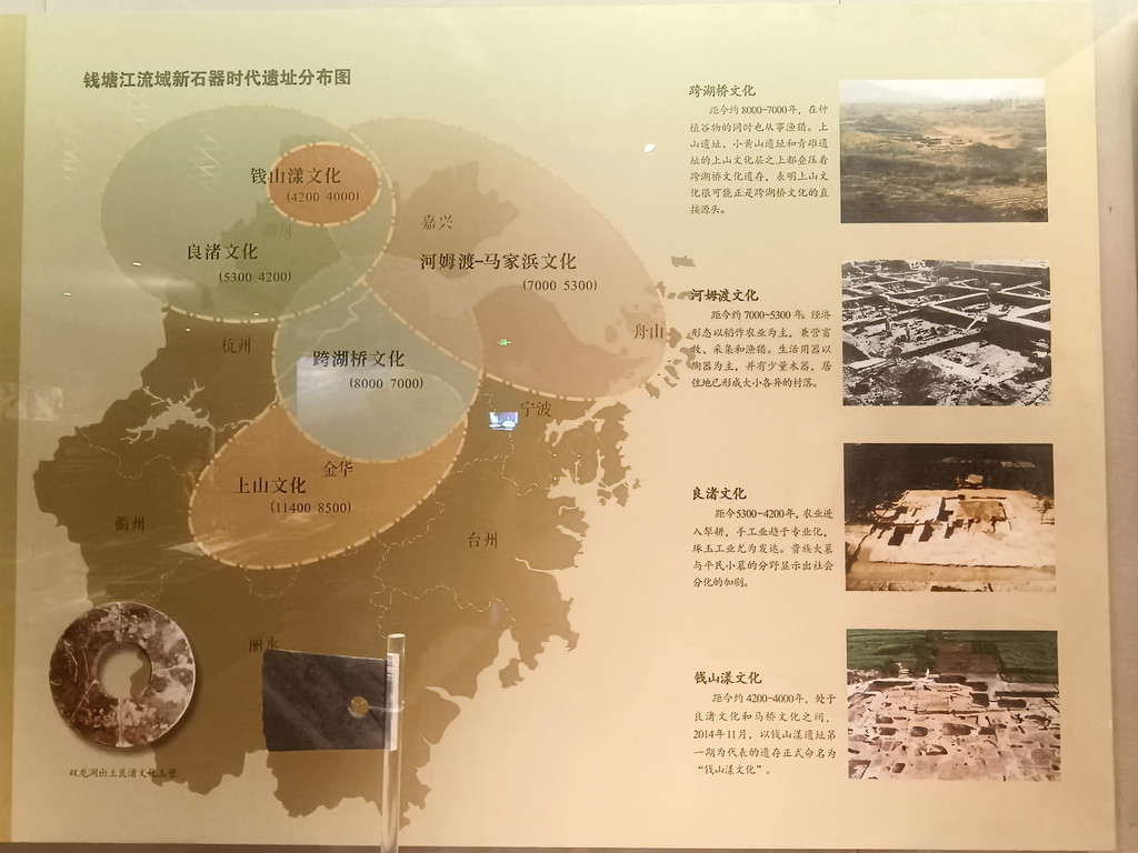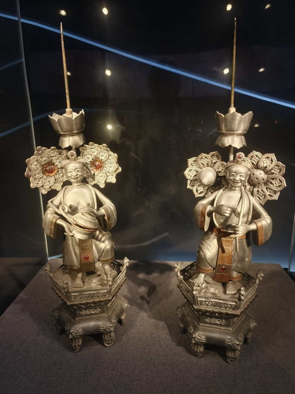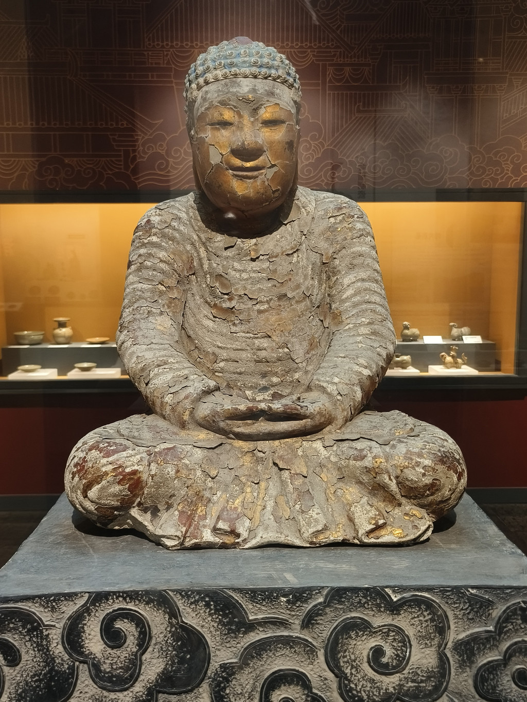 天台博物馆与国清寺相距1.2千米,就顺路看了一下。博物馆设有神秀天台、名城天台、家在天台、天台雅集、回到白垩纪等展区,展现浙东名邑“十地”之韵:佛教天台宗发源地、道教南宗创立地、五百罗汉应化地、济公活佛出生地、刘阮桃源遇仙地、唐诗之路目的地、羲之书法悟道地、霞客游记开篇地、诗人寒山隐居地、和合文化发祥地。馆内有许多佛教文物,如隋塔佛像砖、宋传教寺石刻造像、宋青铜三足鸟、五代金涂塔、国家级非遗“干漆夹苎”造像等,还有新石器时期的石矛、石斧、晋青瓷谷仓罐等珍贵文物。天台出土的恐龙新种骨化石、世界上最大的恐龙蛋化石(张氏巨型长形恐龙蛋)等古生物标本富有地方特色。镇馆之宝有唐“大中七年”铭茶碾、宋宝华石雕龙虎对峙石璧、清乾隆年间“西湖全景”十二屏刻漆寿屏等。
