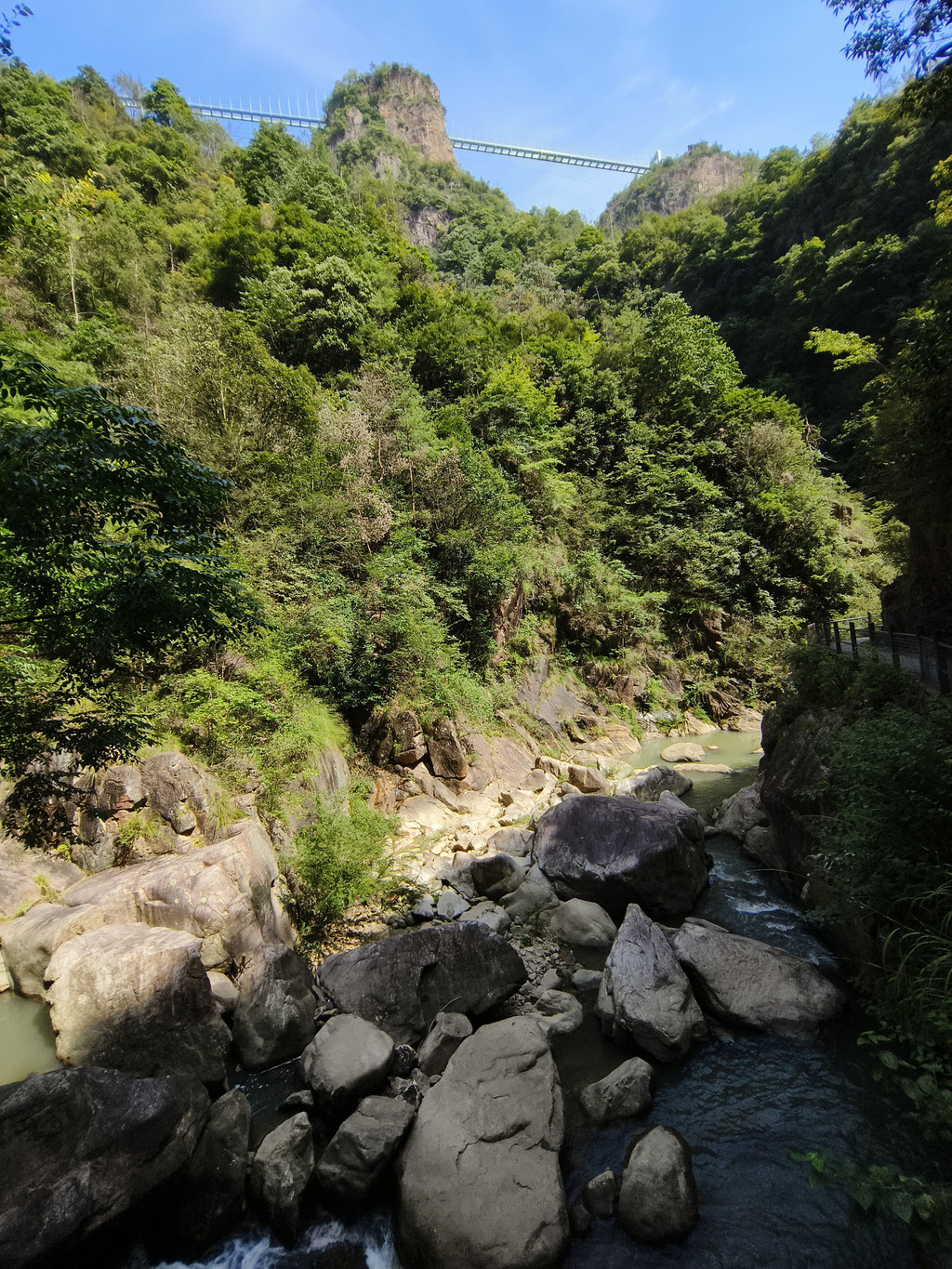 这次我是中午到达天台山高铁站,考虑到石梁飞瀑最远,从游客中心过去约1个小时,游玩至少2个小时,下午半天时间应该够了,所以第一站选择石梁景区,省得明天乘动车前往临海,要算着时间游览,不能尽兴。