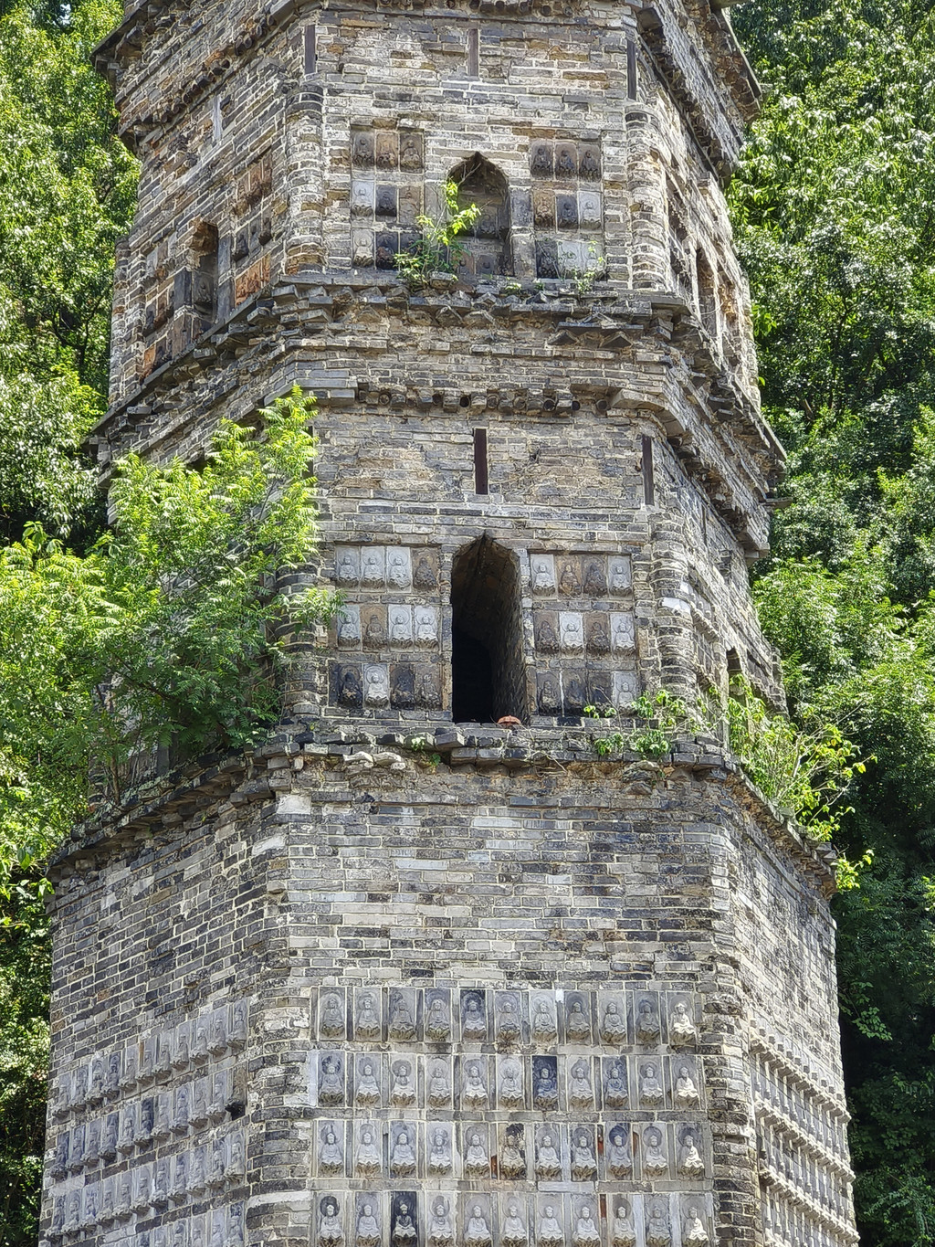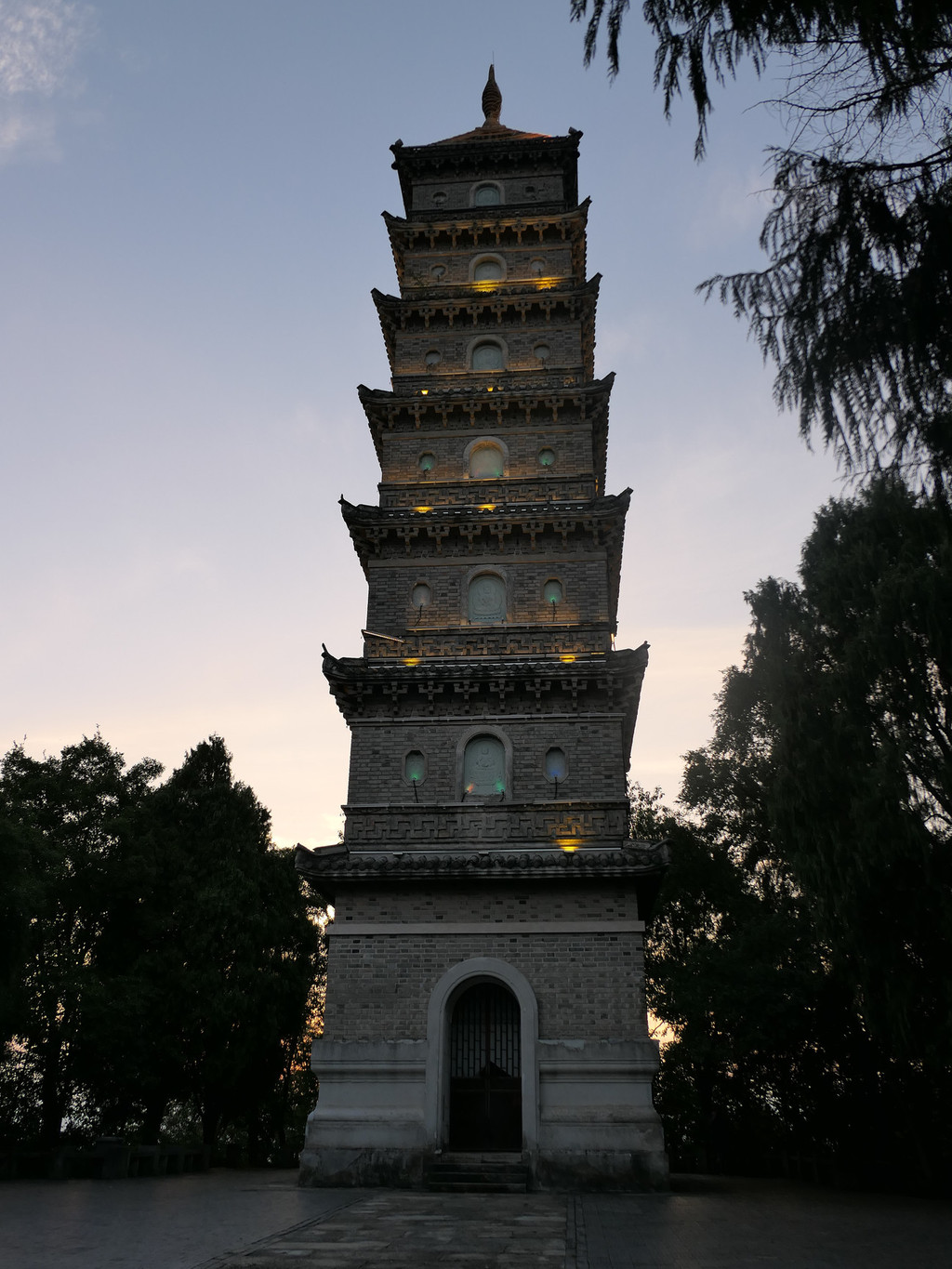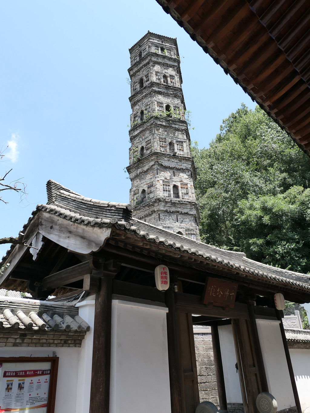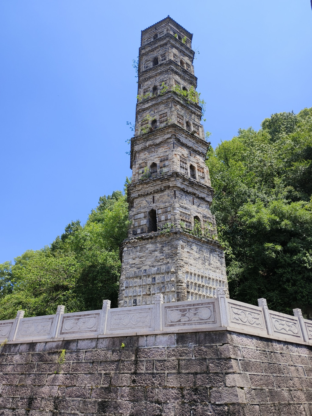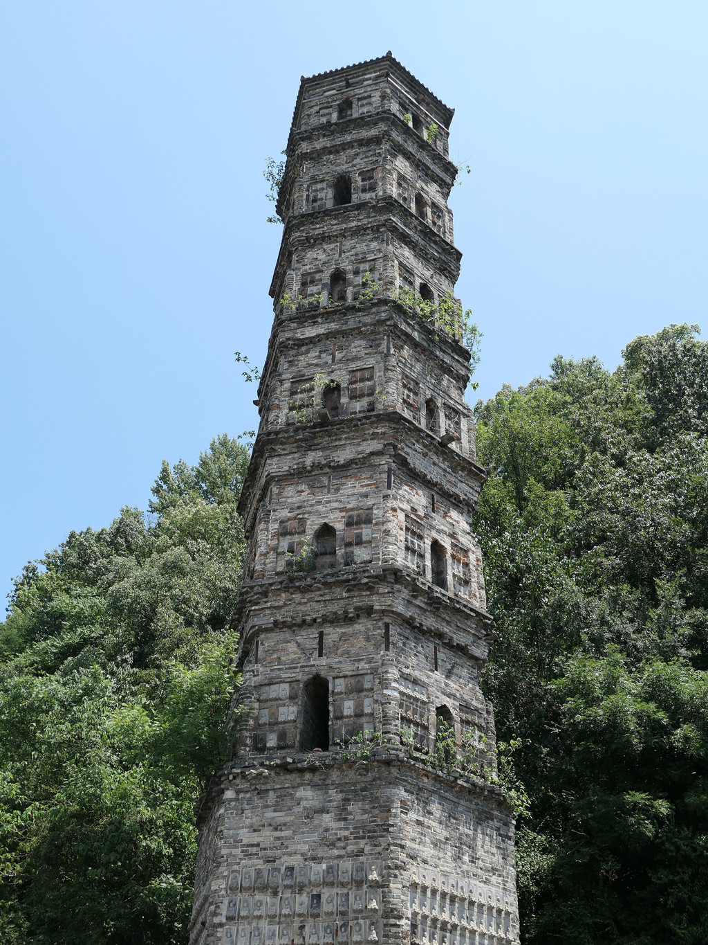 梁妃塔,南朝梁岳阳王萧察于梁大同四年(538)为其王妃所建。四面七层砖泥混合结构,高27.5米,二层以上每层每面都有拱门供奉佛像。历史上多次被毁,现在所见为1947年重建、1978年大修后的建筑。