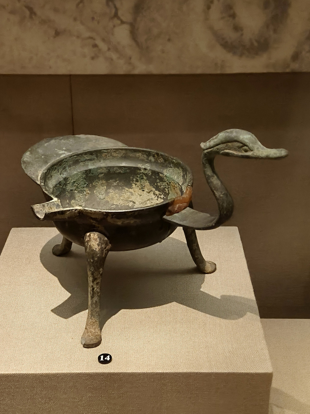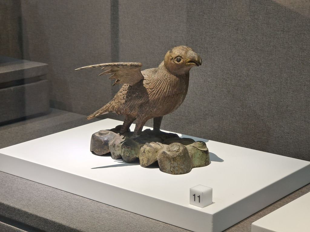 宋青铜三足鸟。鸟多为两足,三足的少见,传说是神话中驾驭日车的神鸟。