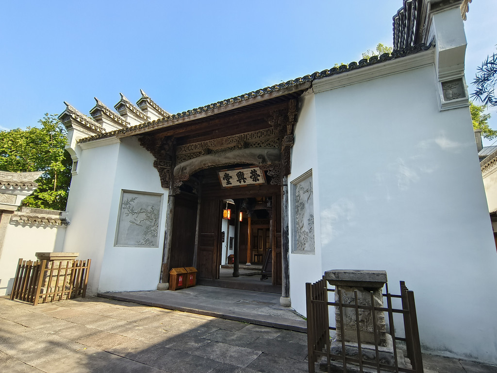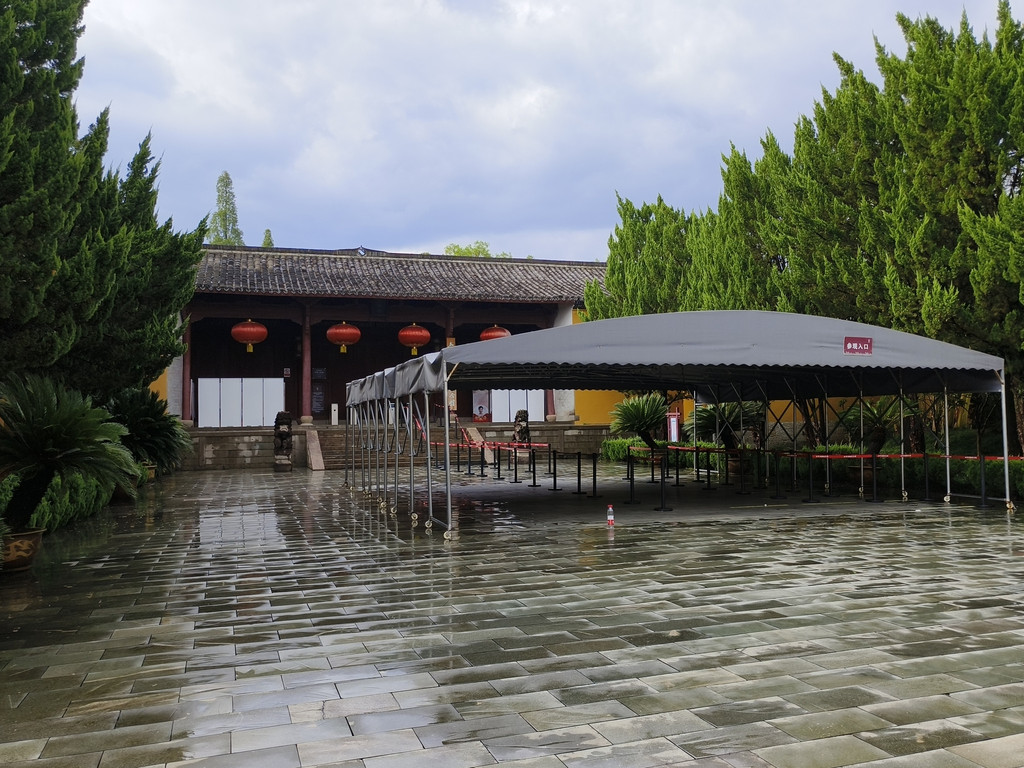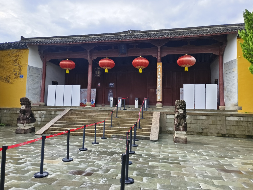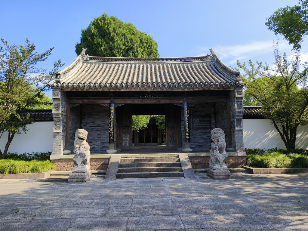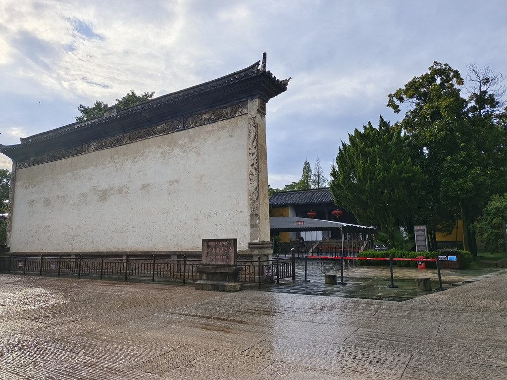 太平天国侍王府,始建于1861年,是太平天国侍王李世贤在浙江的军事指挥所。里面有“三宝”——壁画、团龙石雕、千年古柏树,还有刚才金华市博物馆看到的清吕焕章《金华府城图》真迹。我们到达时参观时间已过,就没有进去。