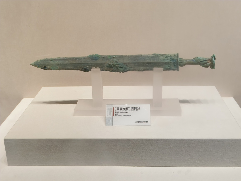 “吴王夫差”青铜剑(春秋)。“吴王夫差”剑是一系列宝剑,国家博物馆、河南、苏州等地都有收藏。