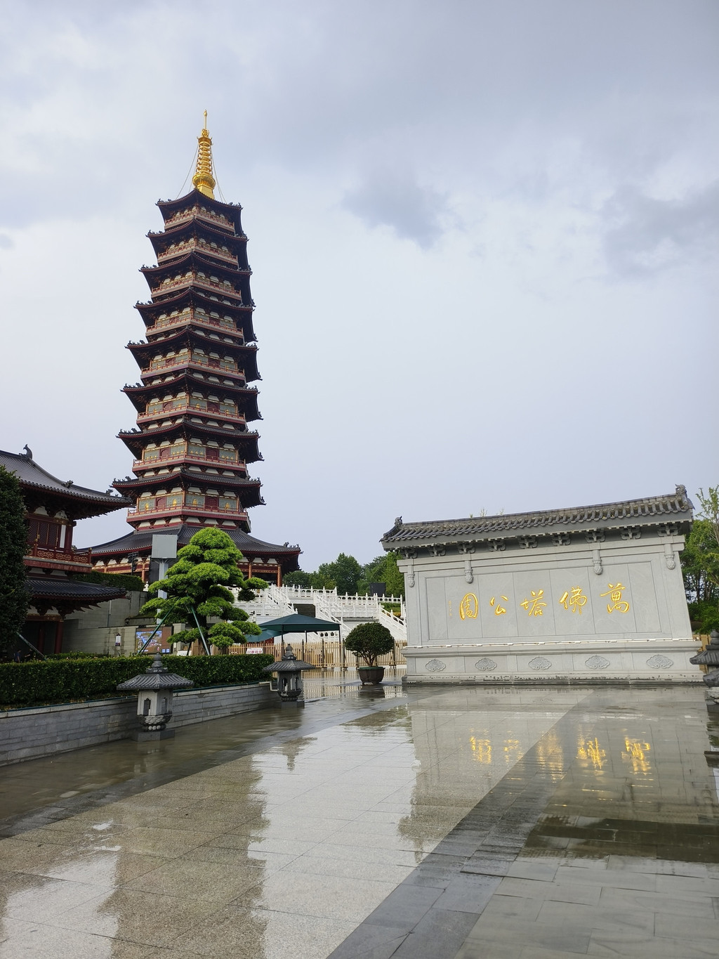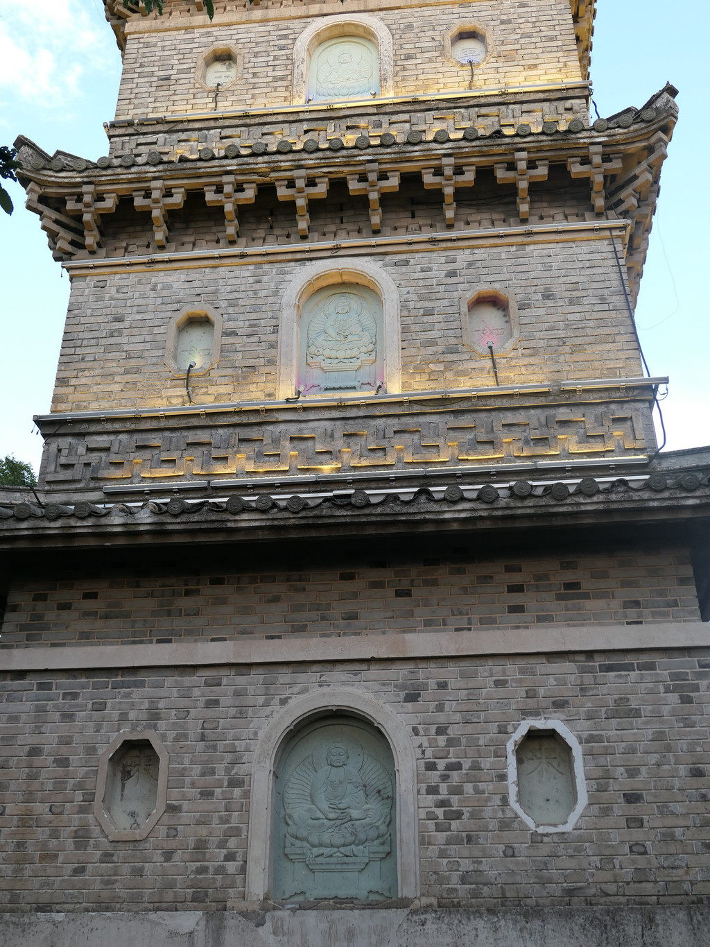 万佛塔是金华古城的地标性建筑,始建于北宋年间,因塔身外壁雕有数以万计的如来佛像而得名。原址位于金华市区塔下寺山坡上,现在所见为2014年复建。