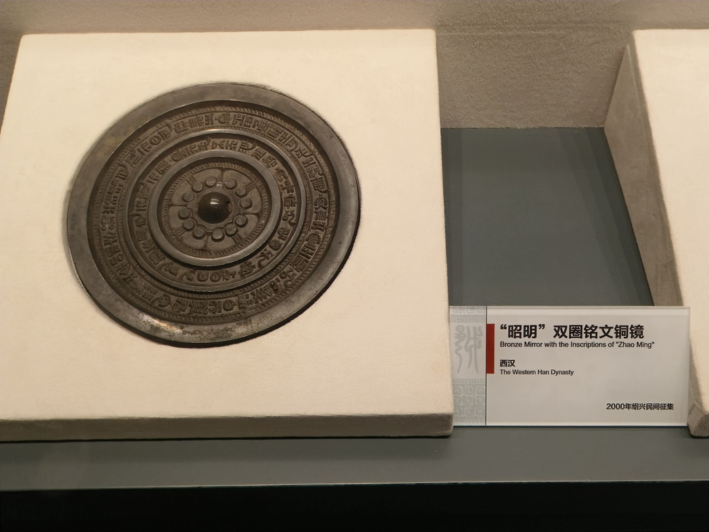 绍兴古代铜镜在中国铜镜发展史上占据重要地位,有“天下铜镜出会稽”的美誉。会稽铜镜的形制一律为圆形;镜背装饰图纹则精彩纷呈,有车马神人画像镜、吴越故事画像镜、宴乐歌舞画像镜、神兽镜、龙虎镜、博局镜、禽兽镜、蟠螭镜、连弧镜等,前三者为绍兴独有,其它是常见镜类。绍兴博物馆馆藏会稽铜镜达600余枚,其中的珍品有“建安十年”重列神兽纹铜镜、“驺氏作”东王公车马画像铜镜等。