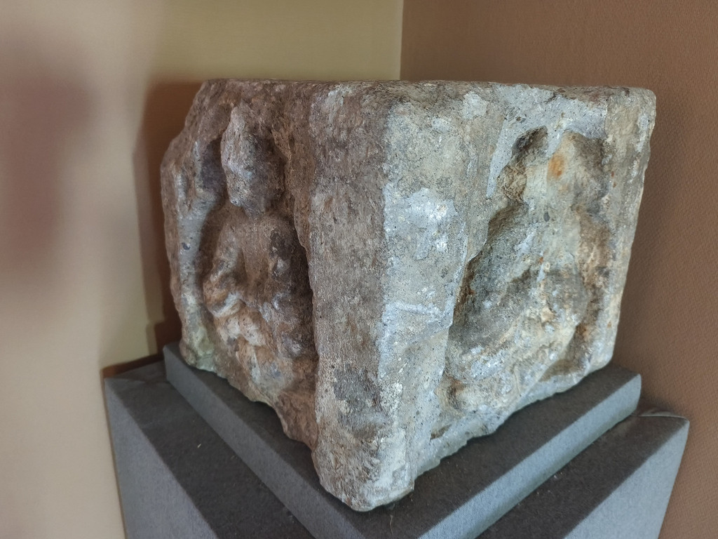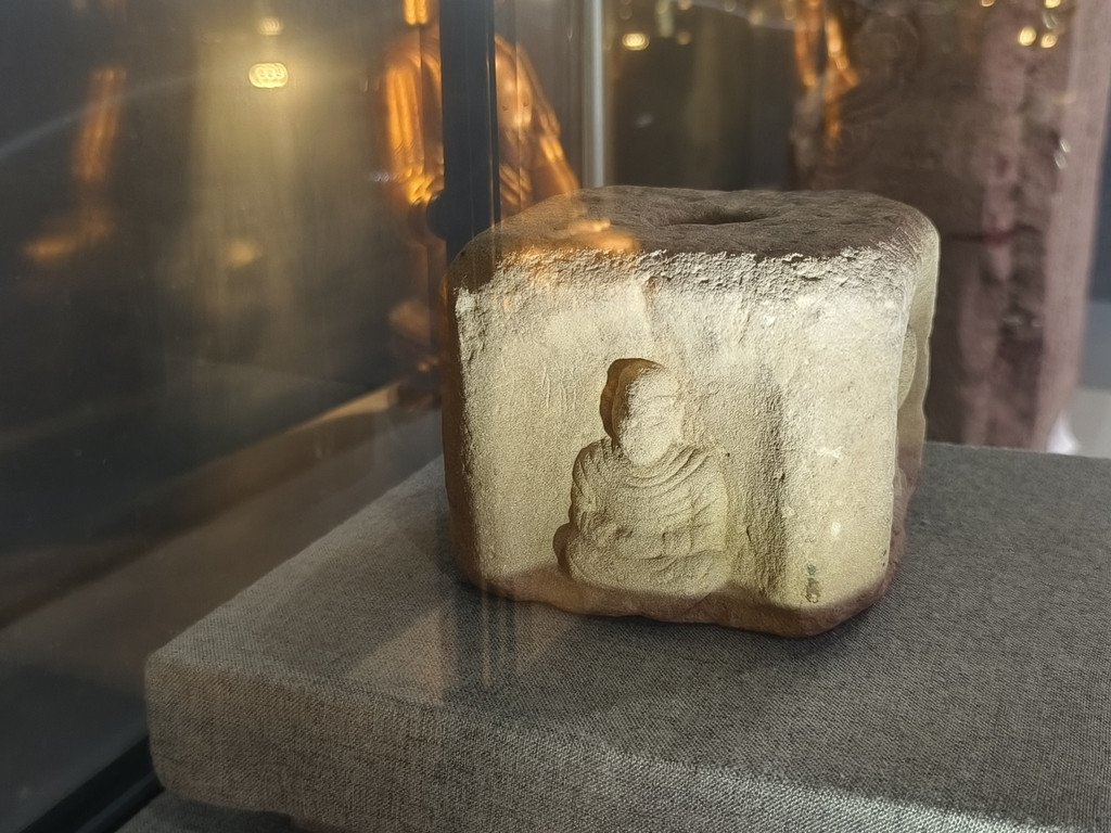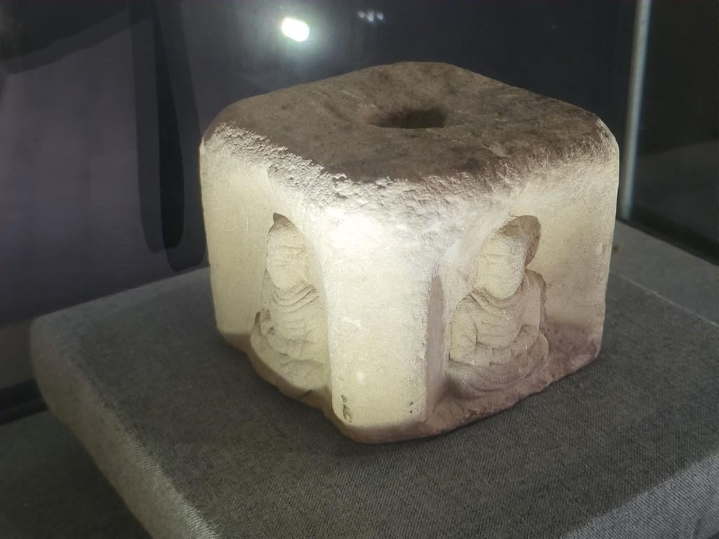 北魏石刻浮雕佛像,四面刻有佛像,中间有孔。