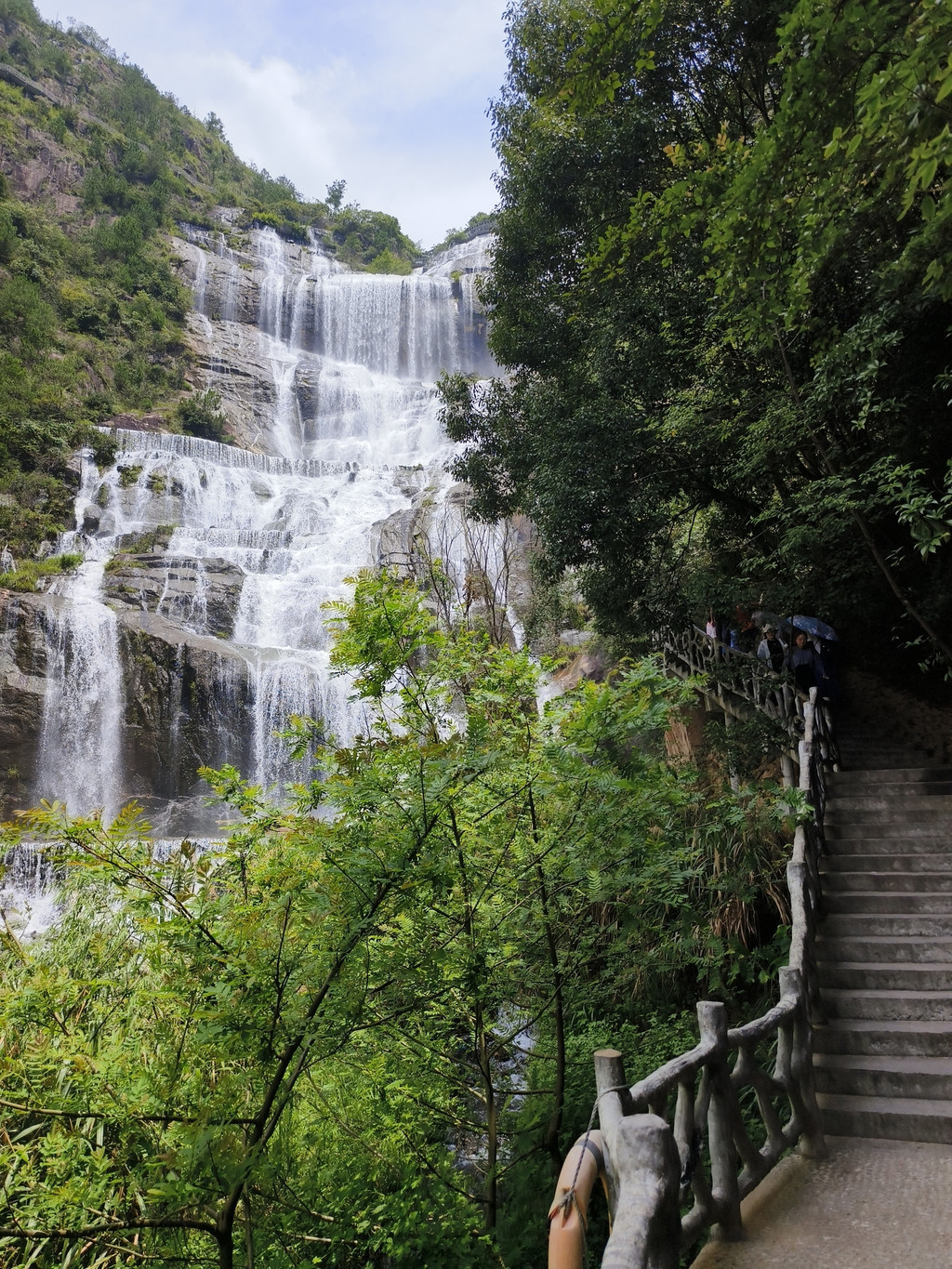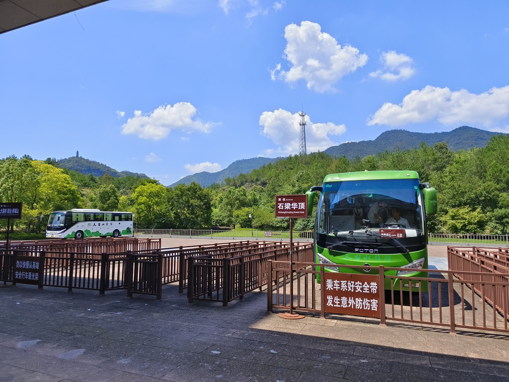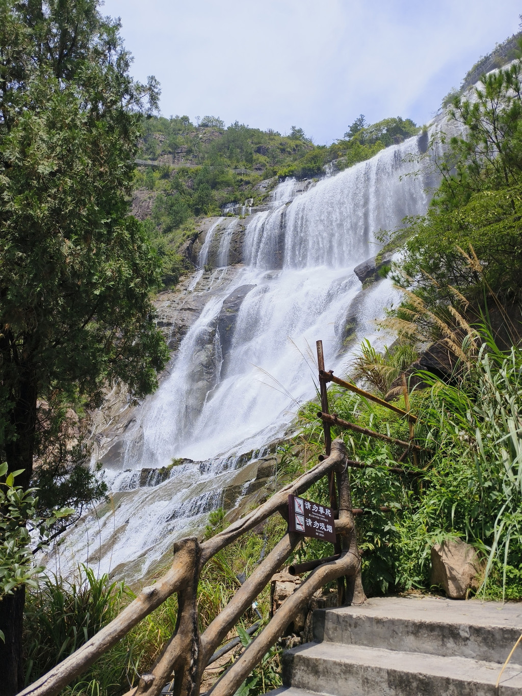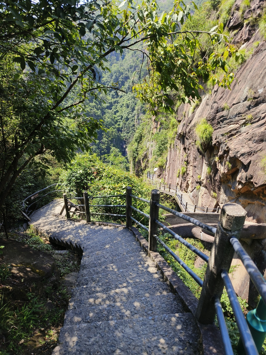 石梁景区的最后是一段长120米的山路,要一直向上攀爬,陡峭的台阶会让平时缺少锻炼的人感到吃力。返回游客中心的最后一趟班车是下午5点,所以要预留足够的时间,最晚4点半前要赶到铗剑泉。