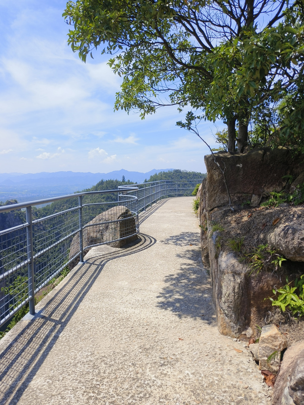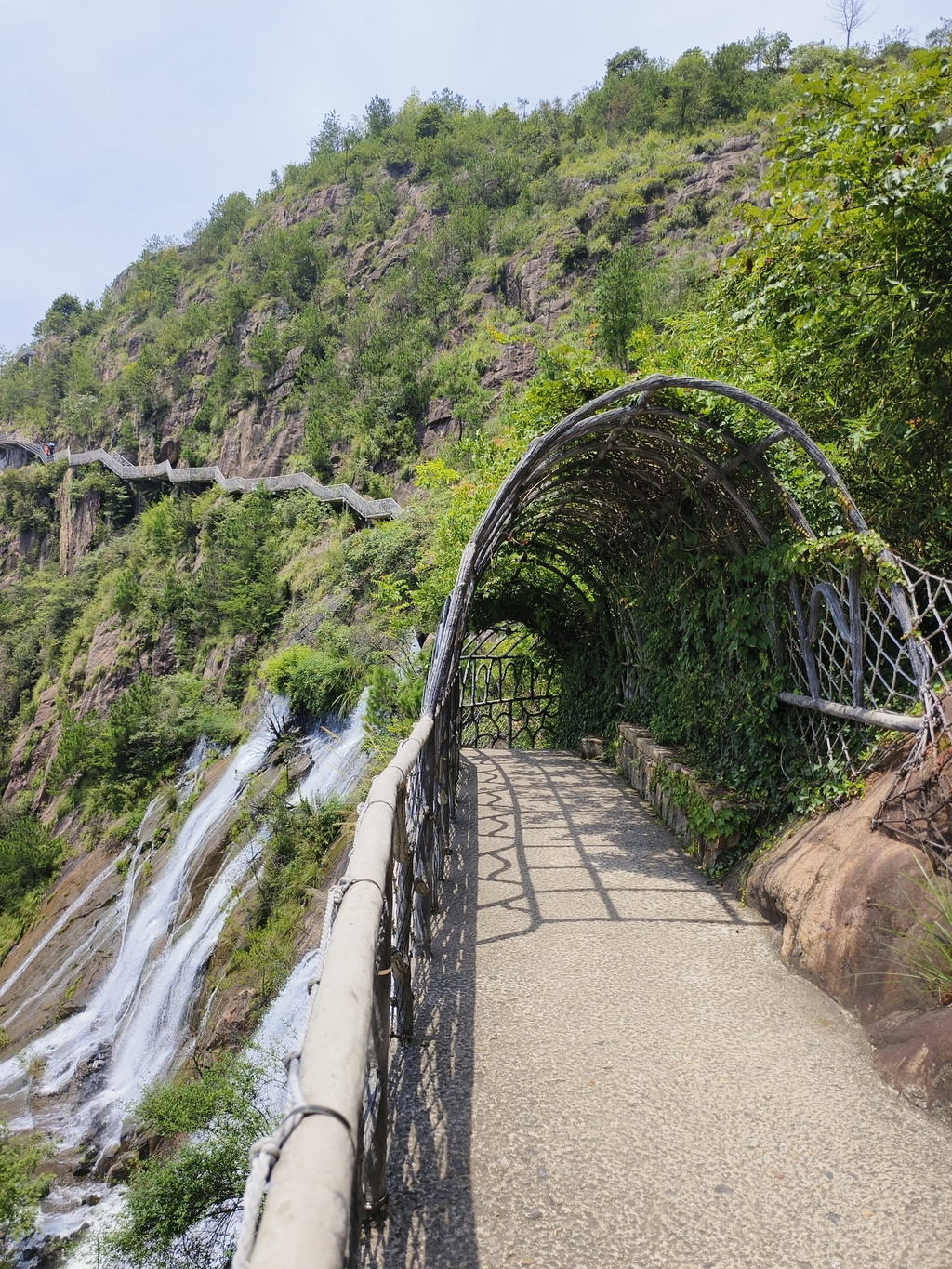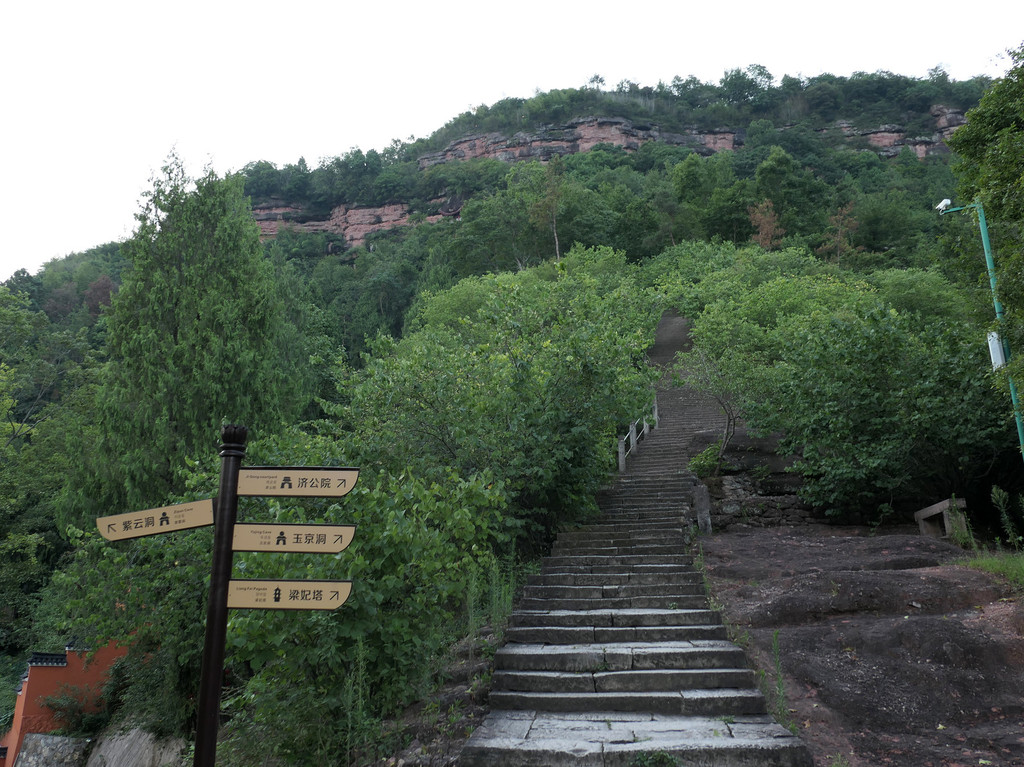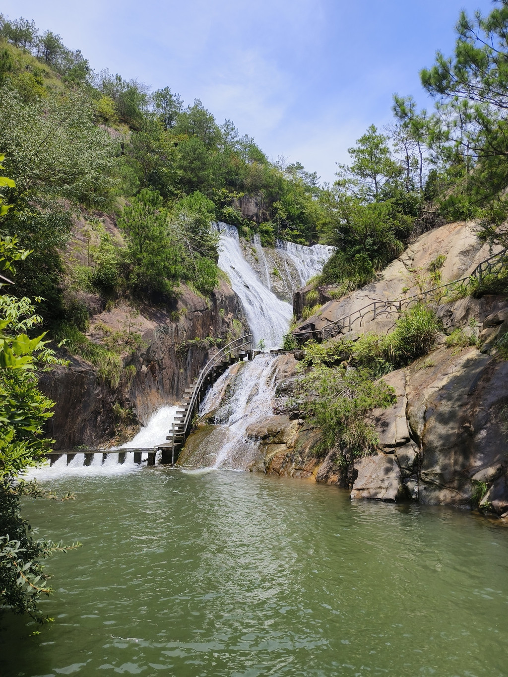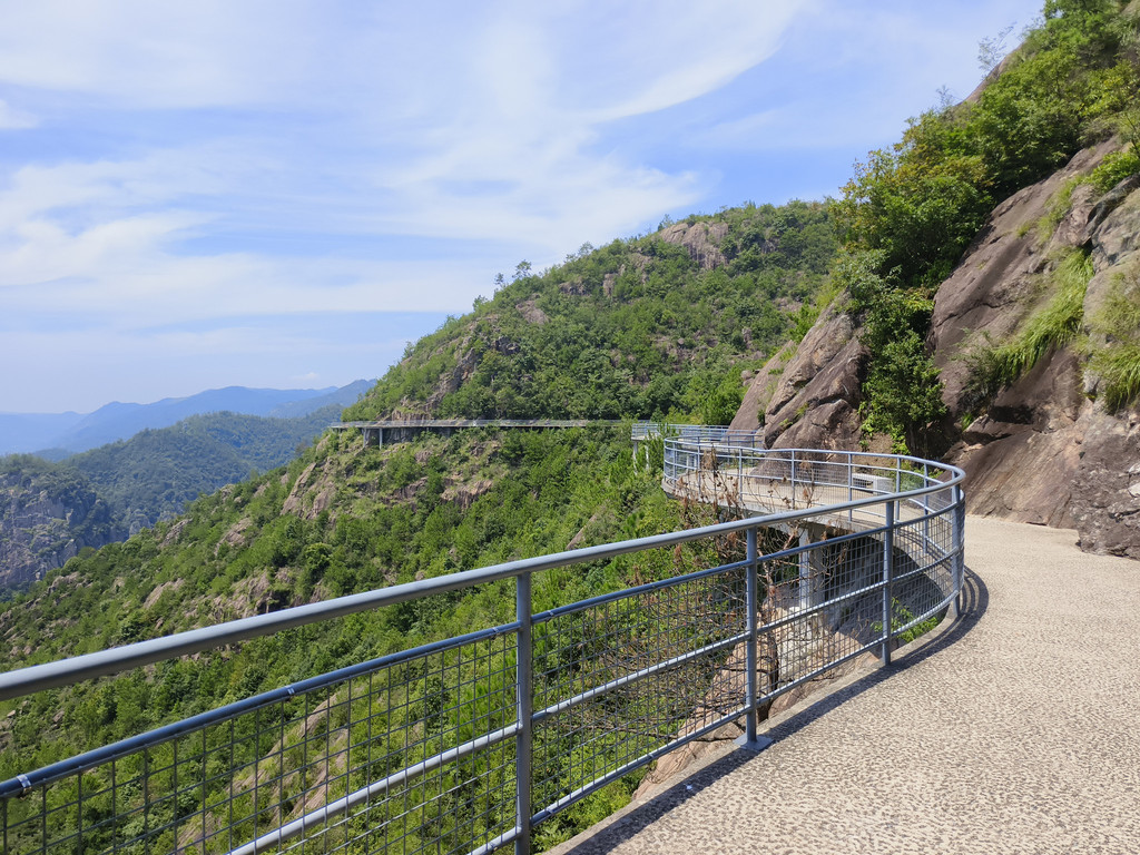 石梁景区的最后是一段长120米的山路,要一直向上攀爬,陡峭的台阶会让平时缺少锻炼的人感到吃力。返回游客中心的最后一趟班车是下午5点,所以要预留足够的时间,最晚4点半前要赶到铗剑泉。