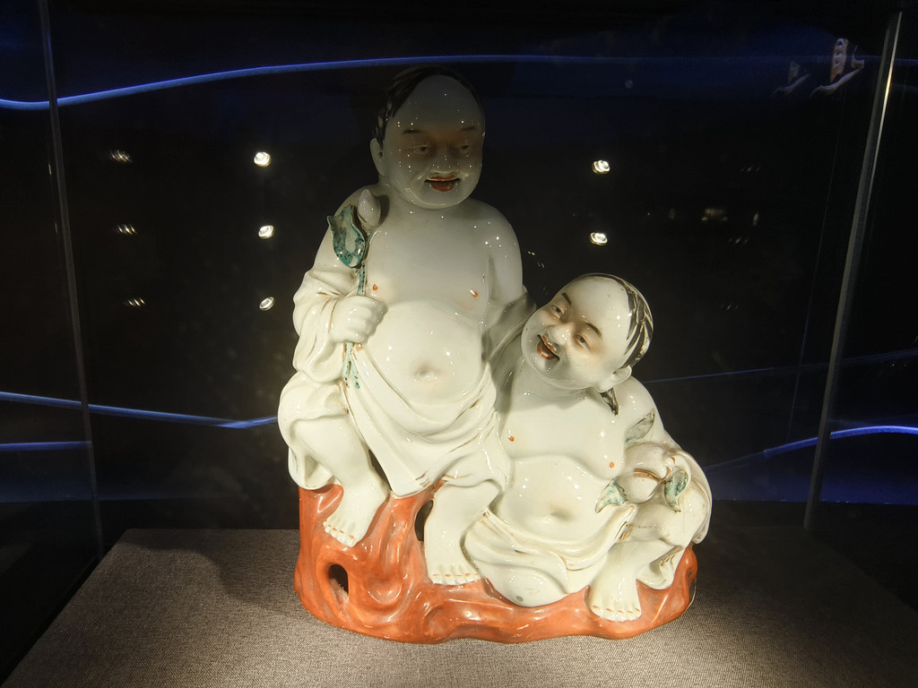 和合二仙是寒山、拾得两位天台山高僧的化身。寒山手持荷叶莲花,谐音“和”;拾得手捧宝盒,谐音“合”,清雍正十一年(1733)被敕封为和圣、合圣,“和合二仙”的身份得到官方确认,天台由此成为和合文化发祥地。