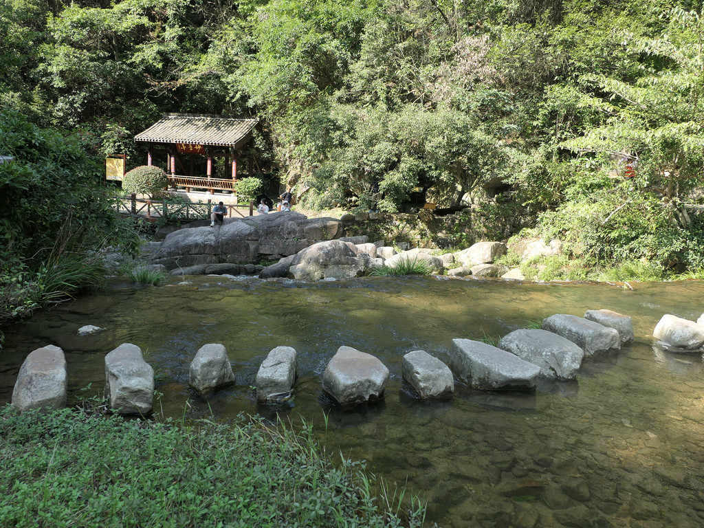 金溪,与刚才看到的银溪汇合后,流向新昌等地,通达远方。唐代诗人就是沿着这条水路从新昌来到天台的,形成著名的唐诗之路。据统计,唐代2200多名诗人中,有300多位到过石梁。