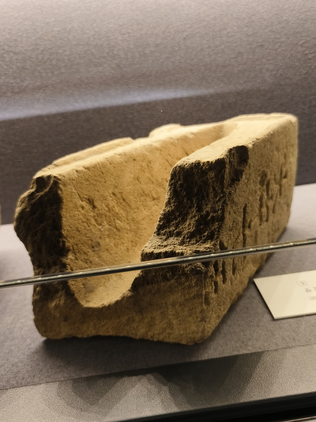 唐“大中七年”石茶碾。茶碾是研碾饼茶的器具。经考证,唐代的品茶流程,先是将茶叶制成饼块,再用茶碾将茶块碾碎,然后加调料水煮,因此古人称“吃茶”而不是饮茶。
