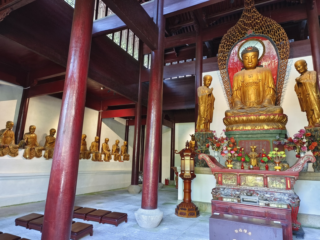 古方广寺大雄宝殿中供奉着释迦牟尼和十八罗汉