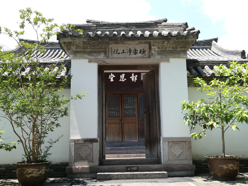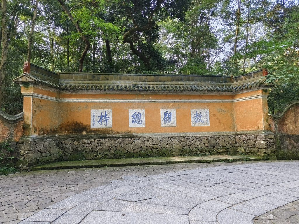 照壁上“教观总持”,由民国佛学家王震1935年题写。“教”指理论,“观”指实践,“总持”是绝妙圆融,“教观总持”的意思是理论与实践完美统一,这也是天台宗的立宗之本。