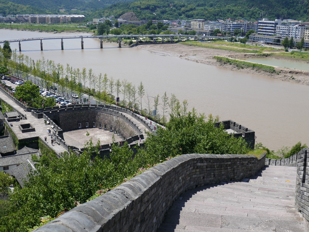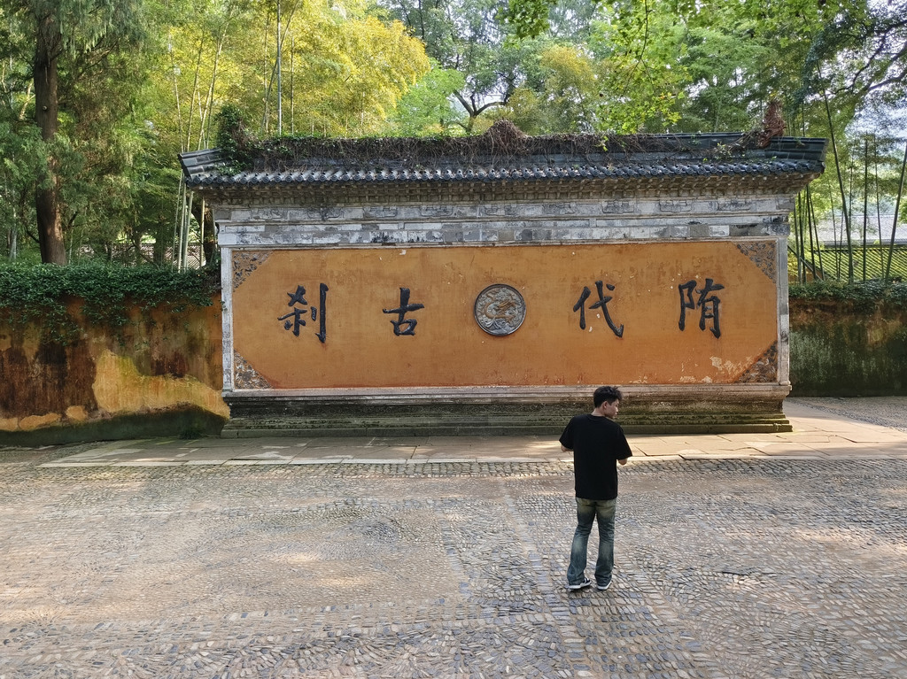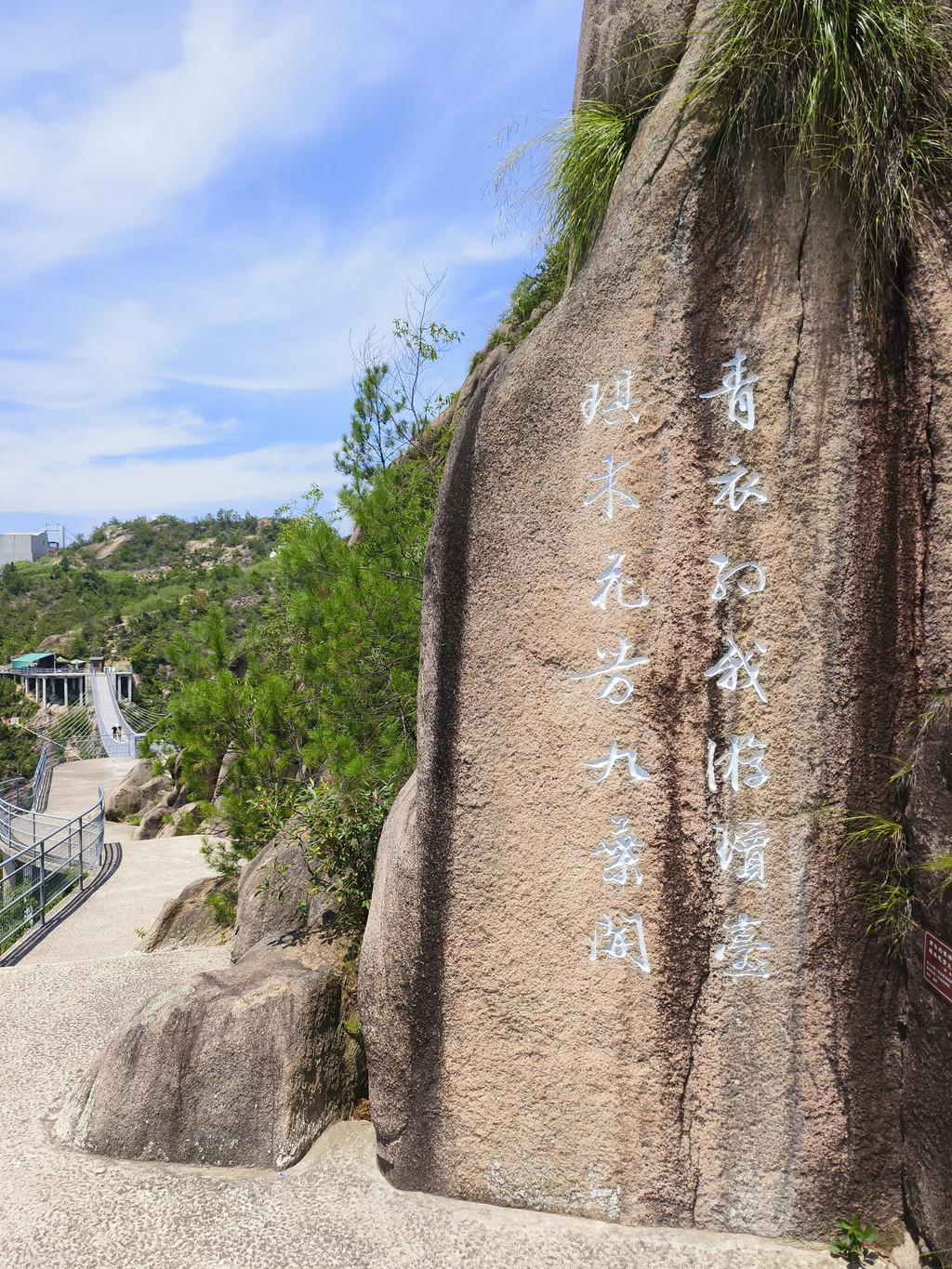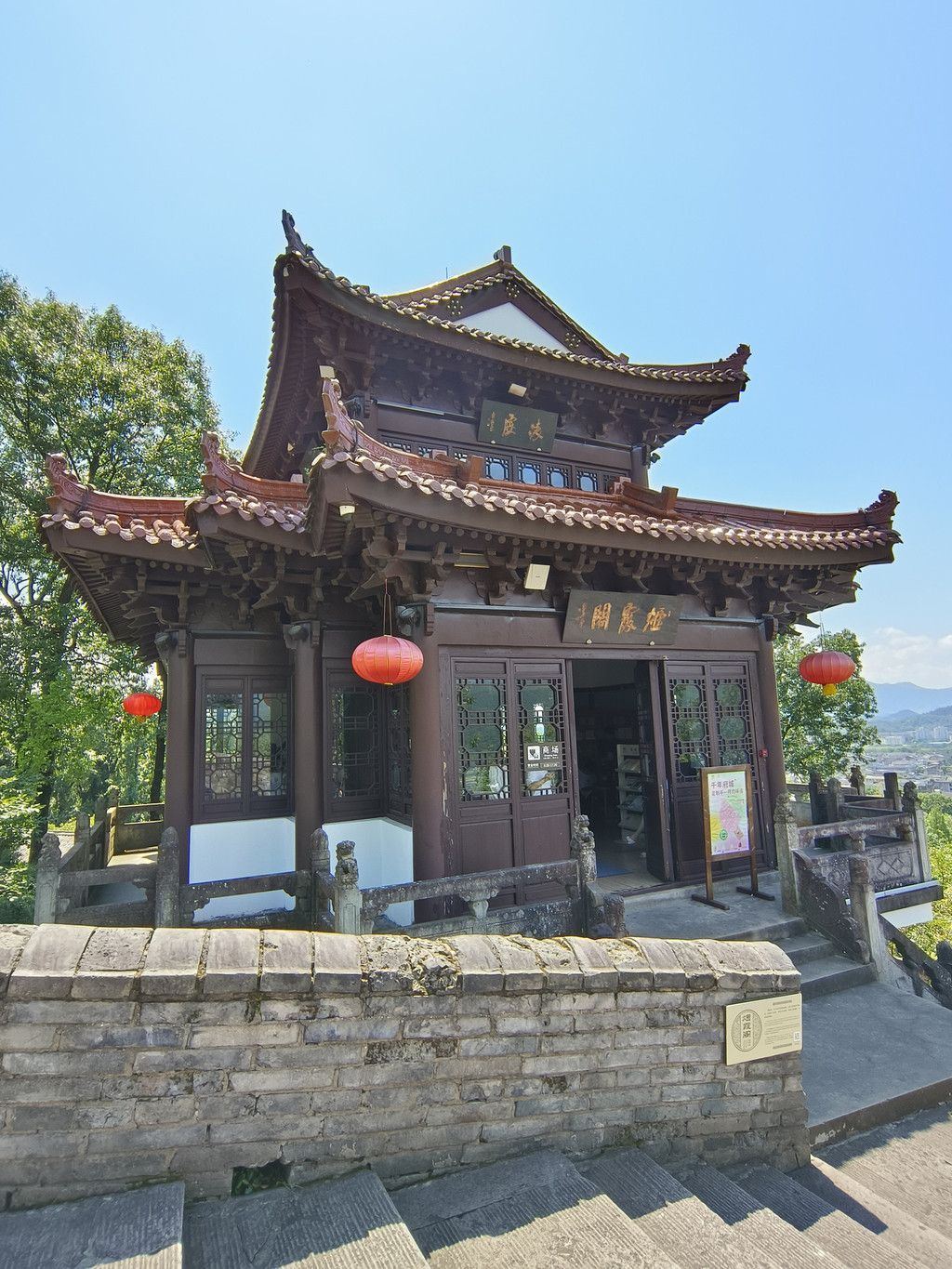 “石桥隐深树,朱阙见晴天”,唐代诗人朱庆馀所题。