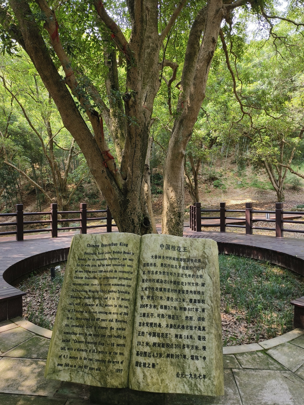 “中国桂花王”,高18米,蓬径20.2米,树冠面积达360多平方米,树龄逾千年。香林村自宋治平三年(1066)开始种植桂花树,如今已连绵成片,形成1.4万多棵古桂树群。