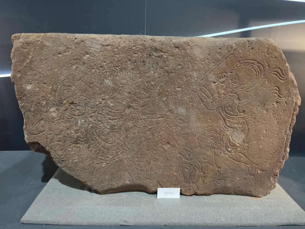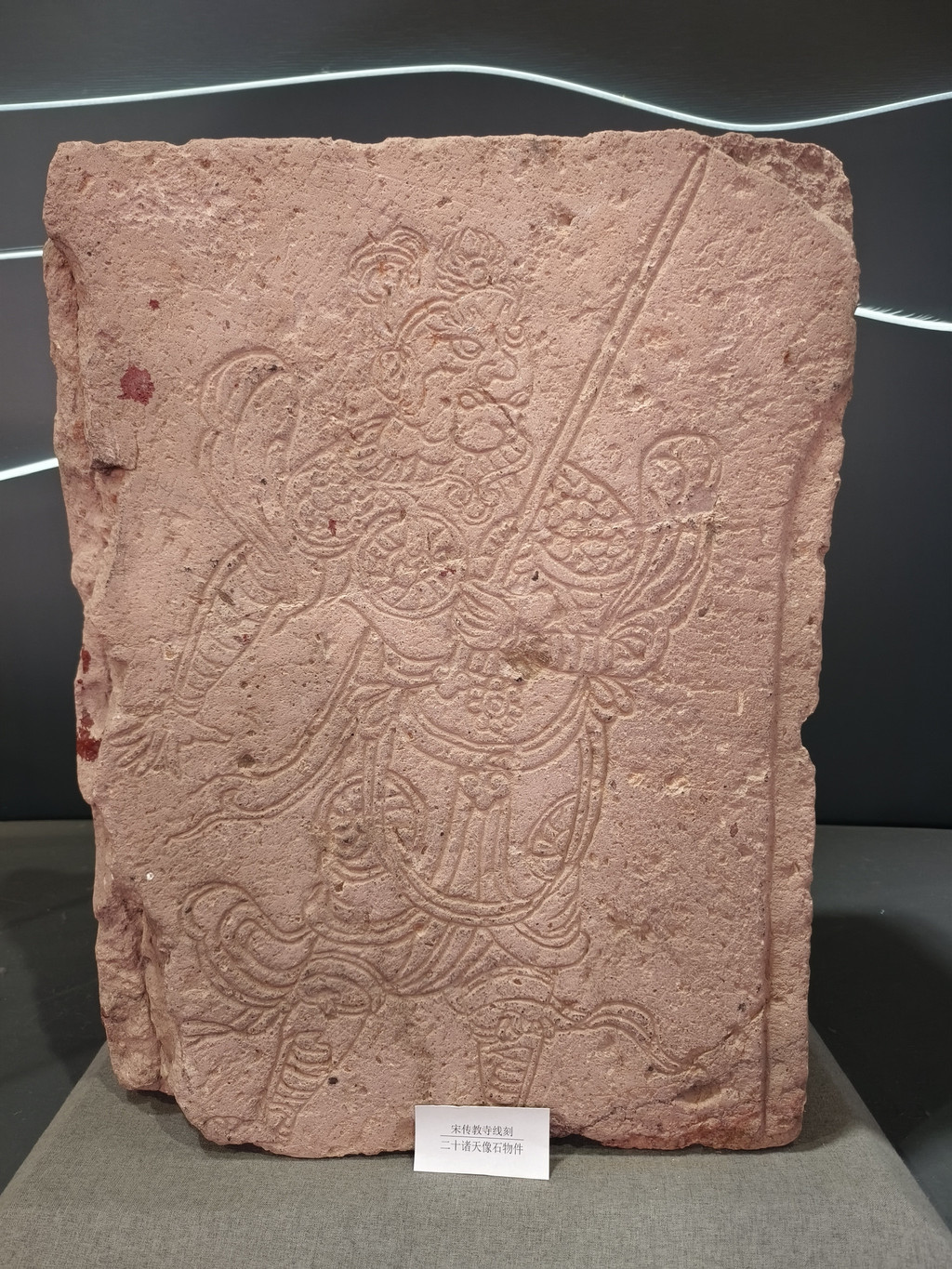 宋传教寺线刻造像,1984年发现于天台县螺溪乡传教村,共13块,刻画佛教护法天神中的“二十诸天”及佛本生故事,“四大天王”、“韦驮”都在其中。