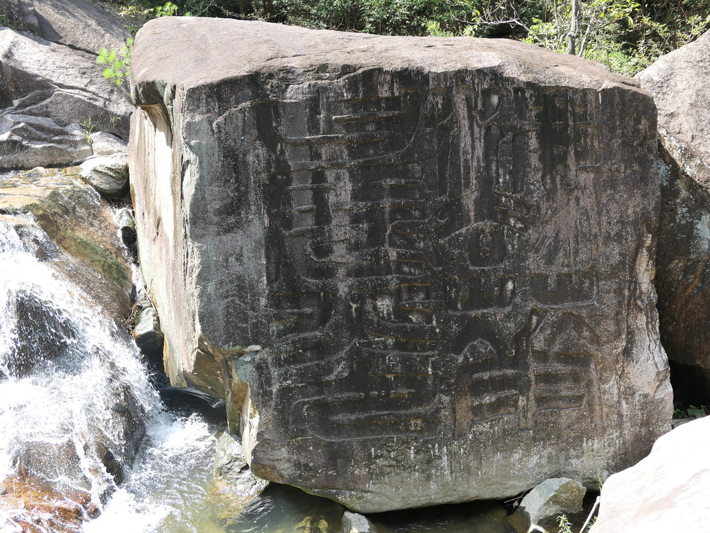 “法华晨光”篆字石印,四米见方,目前国内最大的石印,由台州篆刻家孙新龙2007年题书。“法华”指佛教天台宗经典《妙法莲华经》,大乘教义的集大成之作;“晨光”寓意天台山最早沐浴大乘佛光,是天台宗的发祥地。