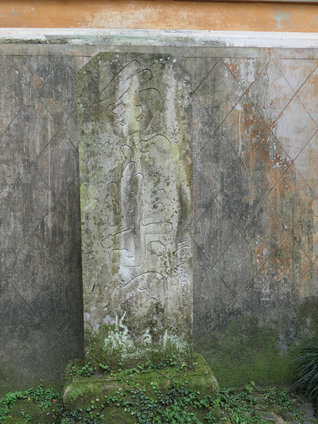 独笔鹅字碑。这个“鹅”字原为书圣王羲之在天台山主峰华顶山上一笔写就,后埋入地下。清咸丰九年(1859)被天台人曹抡选发现时仅剩半块。他细细研究,花了整整七年时间重新补全,移碑于此。据说右半边是真迹,左半边为补写。