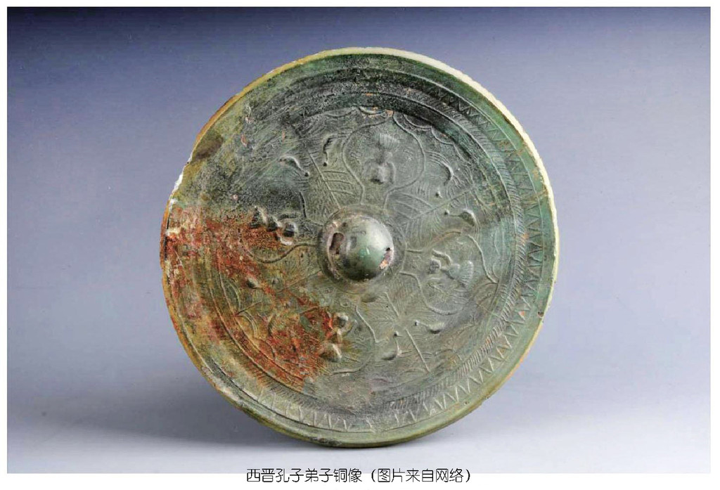 “建安十年”重列神兽纹铜镜。镜区作浮雕式图案,共分三层,第一层列坐四神人;第二层以钮居中,左为两青龙,一神人,右为两白虎,一神人;第三层左青龙,右白虎,中间跽坐三神人。镜缘内侧为隶书铭文带,内容为:“吾作明镜幽冻官商周罗容象五帝天皇白(伯)牙弹琴黄帝除凶朱鸟玄武白虎青龙服者豪贵延寿益年子孙番(蕃)建安十年造”。镜中青龙、白虎、朱鸟、玄武四灵是镇守东西南北的象征,寓意四方安泰、祥瑞,反映当时社会对本土道教文化的崇尚。