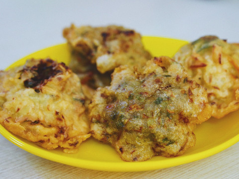 浮粿,是泉港地区的特色,类似于 厦门 的海蛎饼,属于炸物,一般炸成六角型的,雪花状。据说还有硬的和软的两种,里面包的馅料就是海蛎、瘦肉,表皮是地瓜粉与米粒等等。刚出炉的浮粿非常香,本就喜欢海蛎饼的我一下子就喜欢上了,海蛎感觉分量不多,后面查了原来是因为C9的原因海蛎不好买到了,如果海蛎更丰富,那味道要有多美?