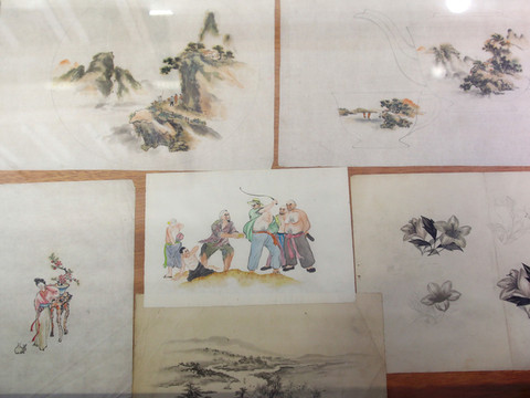 烧制到陶瓷里的图案,都要根据陶瓷的形制,首先在纸上画出底版,再根据底版绘制到瓷器上,这便是瓷画。林家从事瓷画最早于乾隆时期,林家先祖林明俊于 德化 成立的“金陞瓷”,当时是制作以瓷画为主的出口陶瓷。