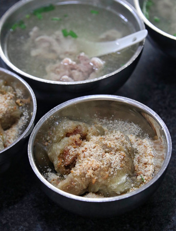 超群芋圆店,一家传承了三代的老店。已经快午后二时,店内依然是人声鼎沸,一座难求。去之前一直以为芋圆是甜口的,还嘀咕着午饭怎么吃这个,到了才发现这个芋圆可是包着肉馅的,吃的时候从热腾腾的锅中捞出,细细剪开,再撒上花生粉,口感软糯,外甜里咸。还有一个就是瘦肉汤,用不锈钢杯炖肉,很有小时候的感觉,汤头清澈甘甜,以至于朋友回程的路上还一直心心念这一口汤。