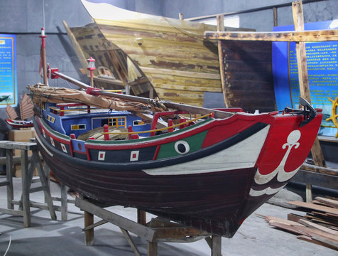 福船是 中国 四大古船之一,有很悠久的历史,在明朝初期,能适用于远洋航行的尖底船只有福船,再加上独特的水密隔舱设计,能够加强船身在风浪中的抗冲击力。因此福船也是当年郑和下西洋时混合船队的主力船型。福船的设计精美,船身还会绘上红黄蓝绿黑白几种组成的图案,点上“眼睛”。在闽南沿海现在还多能见到同款图案小渔船。但是大型的多桅风帆福船已经很少见了。