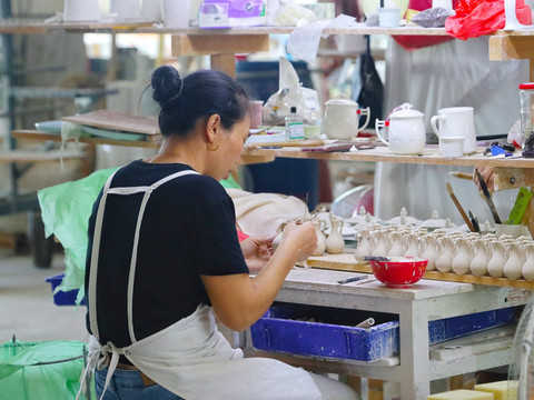 因此来上古陶瓷还有一大目的就是为了拜访 德化 县级瓷画非遗第八代传承人林晓芳女士,国家一级技师,目前在上古陶瓷担任瓷画主创与指导。在 德化 新秀园也有自己的工作室“肃雅堂”。