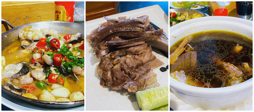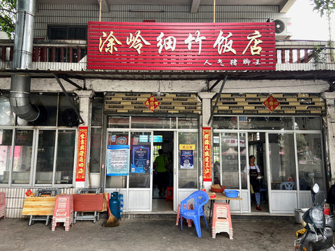一样是一路打听来到这家涂岭细竹饭店,就在大道上非常顺路,停好车进去,墙上的牌匾显示这家店曾拿过某年度金牌猪脚奖。好,就你了!几个人合计着来一个涂岭猪脚就好了,你没有看错,一个。老板娘过来问了句“几个人呀?”答:4个。就在我们还在等老板娘拿菜单的时候,齐刷刷上来一盆猪脚、两个菜、还有白米饭,老板娘很热情地说,还有一个菜马上好,这可把我们惊呆了!