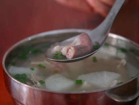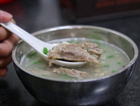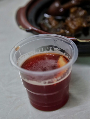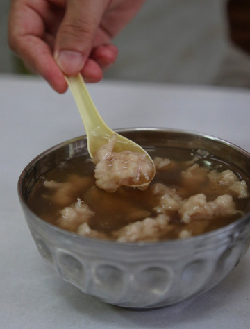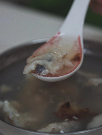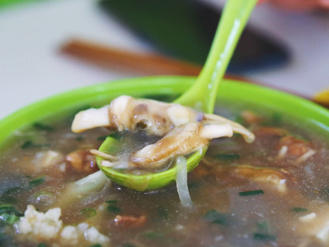 店里也有各种羹,比较少见的是蛏羹,老蛏去壳取肉与蔬菜同熬成羹,蛏汁的鲜美融入到浓稠的羹中,每一口都是精华,蛏肉也很美味。相比起海蛎羹,我更能接受这一口。而朋友的瘦肉汤则是加了酒的,和想象中不一样,他有点接受不来现实,眼睁睁看着我们喝完他面前这碗汤。