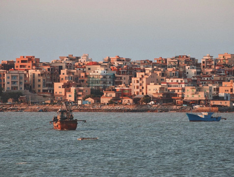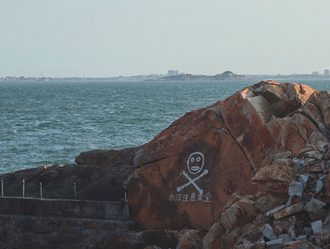水产公司再往前就看到狗仔尾旅游风景区,个人认为这里绝对是一个拍照圣地,说是风景区,完全没有游人,进码头时一个画风很诙谐的骷髅就吸引了我们,码头的尽头是大牛屿,左侧是蔚蓝的大海,右边的港湾和民居在夕阳映照下竟然有一种博斯普鲁斯海峡的既视感。在这里一直等到日落,如果评选最美 福建 夕阳,这里应该能拍得上号吧?不过海风很大,游玩还是要注意安全,朋友眼镜在这里阵亡了,当然最好也不要戴帽子穿裙子来这里。