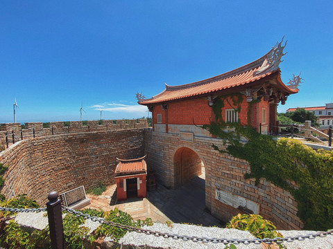现存夯土城基遗址长约2000米、宽5米,现存西门迎恩门以及北门,其中北门另设瓮城。城中多是石头房屋,也是 晋江 地区一大特色,目前尚保留较多完好古建筑,如宋代的留从效庙、明代摩崖石刻等,在城中制高点关帝庙一侧有一奇洞,需俯身方可进入,可容三人,洞中另有一小口正对海面,山风海风于此相遇,阴凉无比,而海边耸立的发电风车也是一大亮点。