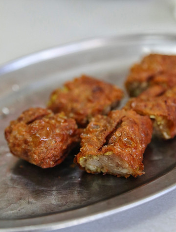 纯炳肉羹汤,走进店内看到墙上挂满的奖牌就知道有多火,原本就想试一下肉羹汤的,结果不由自主点了一堆,炸猪扒也上了,若不是花生汤只能打包回去煮,都想来一份了。老板娘非常热情,一边吃着一边唠嗑,然后把鸡卷也点了。肉羹汤里的肉羹分量很大,肉羹脆鲜,汤头也很不错。猪扒看起来像西式猪扒,吃起来完全不一样,外脆里嫩,老板娘说因为是鲜肉不是外面那种做好的,难怪能得奖。鸡卷其实就是 厦门 叫五香卷的东西,很脆很香。