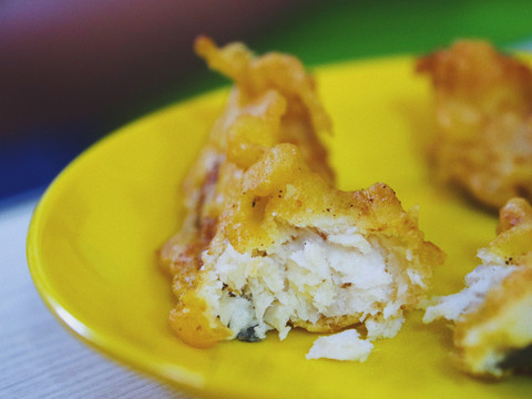 鳗浮也是有特色的小吃,吃了各种浮,我总算明白了,浮在当地就是炸的意思,炸物在油锅里浮起来了,是不是很形象?鳗浮采用的是切段的鳗鱼,骨刺较少,腌制好的鳗鱼炸至七分熟放凉再炸第二遍,就成了外酥里嫩的鳗鱼炸了,吃起来竟然与鲨鱼炸有异曲同工之妙,鱼肉松软很是好吃。