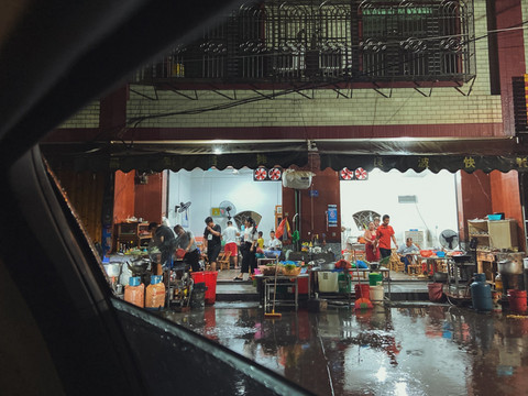 不知道是不是上天怜悯,雨越下越大,高速路口竟然封闭了。俗话说下雨天留客天,几个人一商量,干脆在 永春 多呆一晚再走吧,(其实也是怕王老师晚上戴着墨镜开车着实危险哈)。而且还可以顺道去五里街一品正宗咯摊。路上经过了香都达埔,这里的 永春 篾香非常有名,还有心心念的达埔麻粩,可惜雨实在太大了,眼睁睁看着一家家麻粩咻地一下过去,完全下不去车来买了。