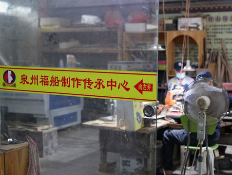 重新设定导航找到位于峰尾镇打银村的国家非遗福船传承中心,一座屹立在海边的高楼,停好车我们惊讶地发现,大楼正在翻修!正黯然神伤准备离去之时,突然有个人朝我们走来,问明来意之后,表示愿意带我们到大楼底下临时的办公场所参观,来者便是中心主任林配宗,真是运气爆棚,朋友笑称未来的非遗馆长替我们讲解呢,还是独家的,要好好珍惜。