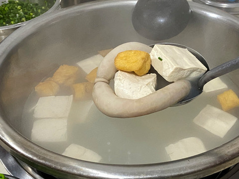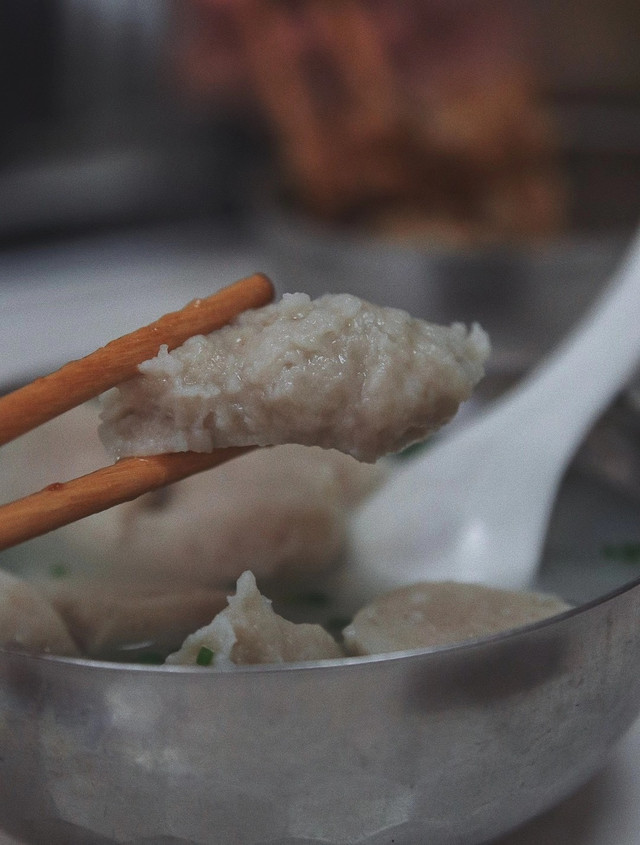 离开福全古城计划前往衙口吃午饭,中途会经过深沪镇,一个有着海底古森林的地方。此时已近正午,饥肠辘辘的一行人决定在镇子里先垫垫肚子。提起深沪美食,最出名的莫过于拳头母,一种以猪瘦肉和猪肉筋制成的大丸子,长相酷似拳头,因此得名。和肉丸一样用高汤煮开,吃的时候剪成小块,因为有肉筋的缘故,比起丸子更加Q弹。