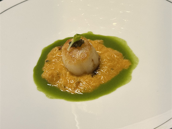 蟹粉烩北海道带子:丰富而浓稠的的蟹粉与硕大北海道带子相互依托,蟹粉的浓郁与带子的鲜甜相得益彰,两种海鲜尤物联袂出演,鲜甜美味交织相替,细腻滑嫩让人一尝难忘下次再来这家餐厅,我还会点这道菜。