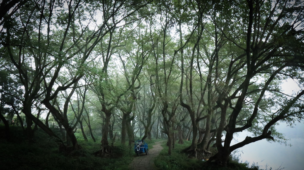 河边有绿道 --- 环行自行车或步行便道,成林的香樟树是50年代以来陆陆续续搞绿化栽树而成。。。