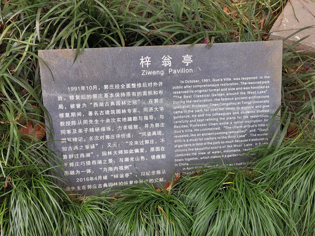 郭庄是91年才对外开放的,整修时非常尊重知识,礼请古建筑园林专家陈从周教授 指导修复这一杨公堤 的江南园林!