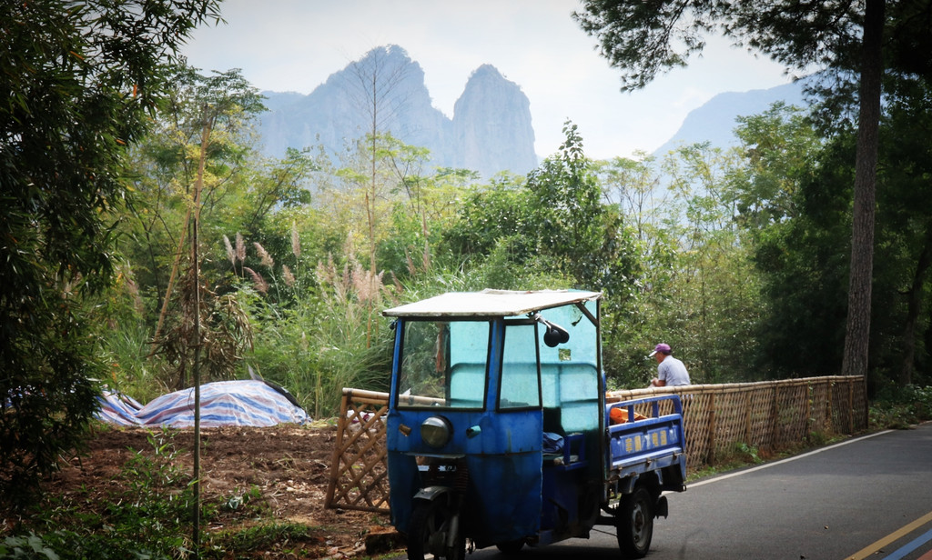 D4 寄存大行李在酒店后,乘酒店的迎宾电瓶车到汽车站,上车购票搭7:30 去南尖岩,约2个多小时,过石练镇进山后有点弯弯曲曲的山路。终点站在村口,初见民宿刚装修过,入住后就山路行。