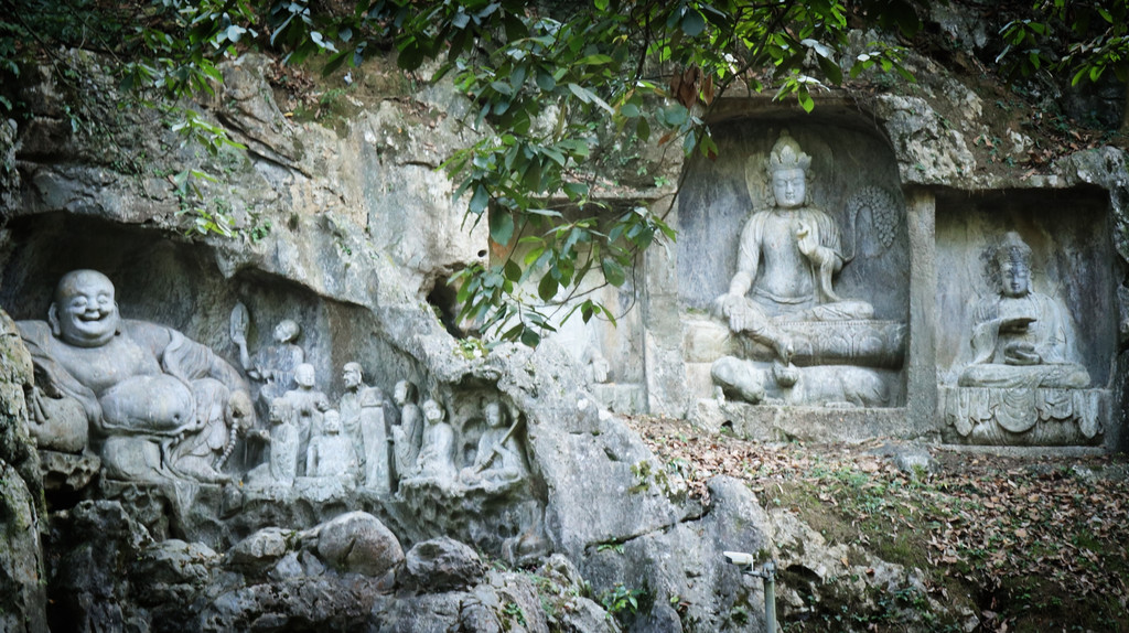 杭州的灵隐寺,在西湖边的少年宫站乘公交#7车,灵隐寺站下就是了。灵隐寺景区的飞来峰,其始建于北齐时代的石窟群