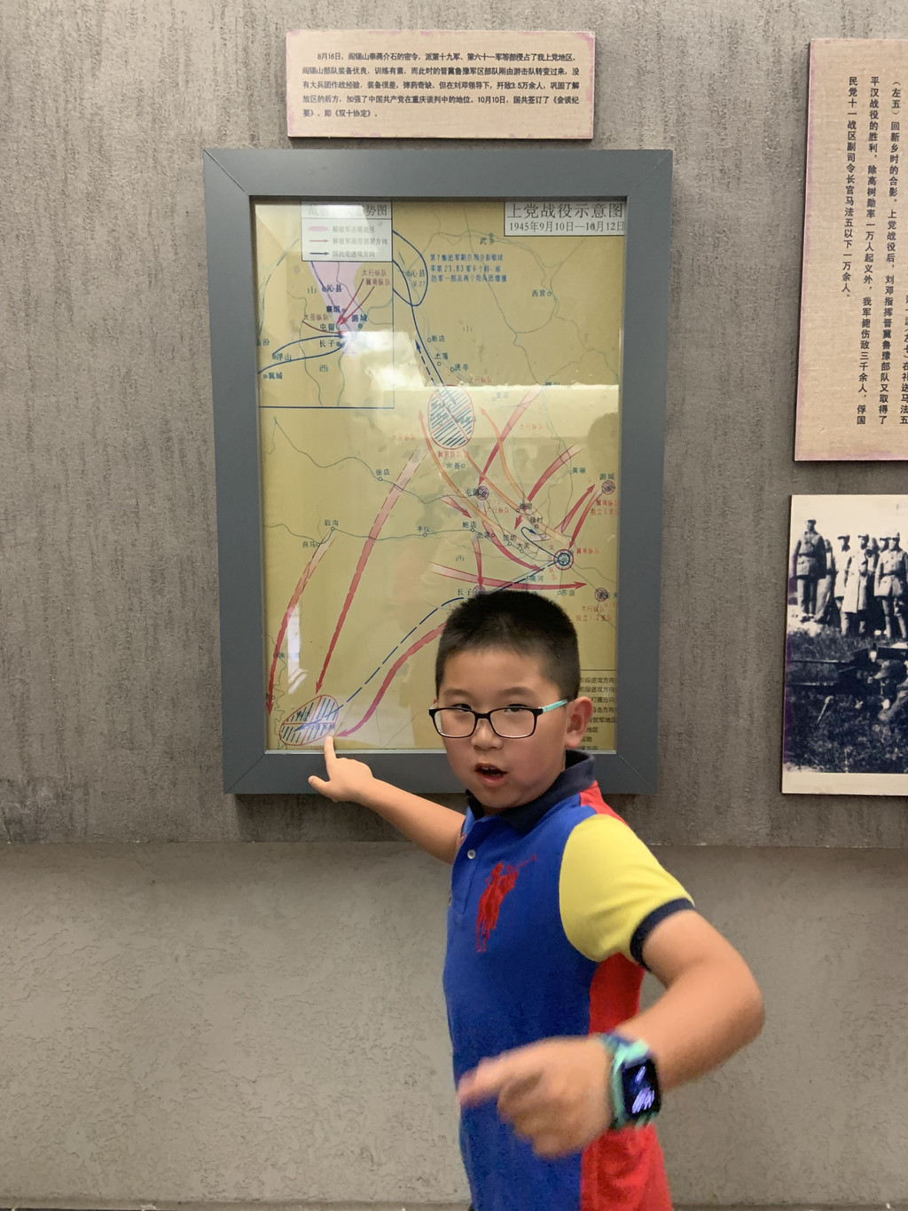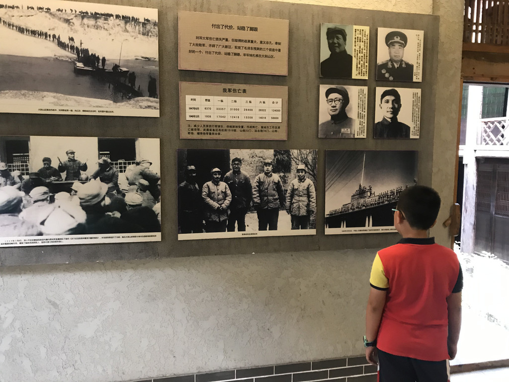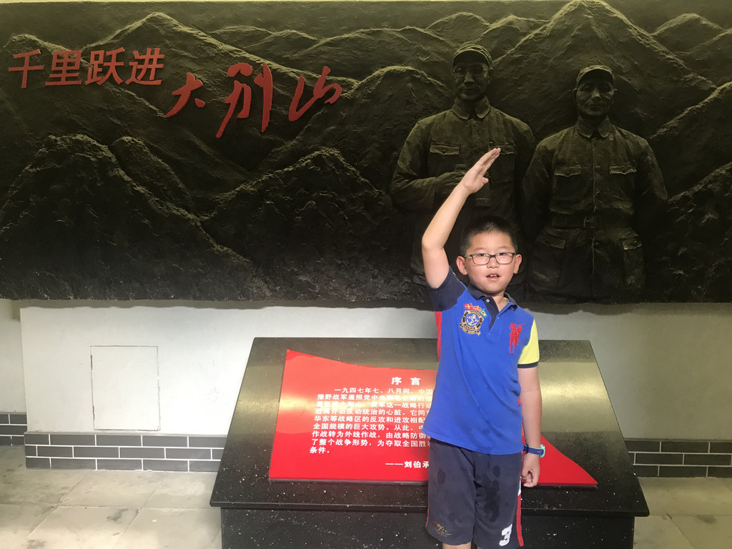 认真好学的龙太子,仔细观看刘邓大军千里跃进大别山的事迹介绍