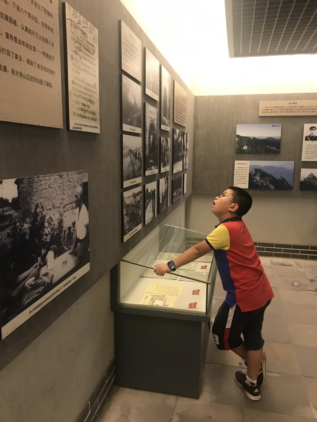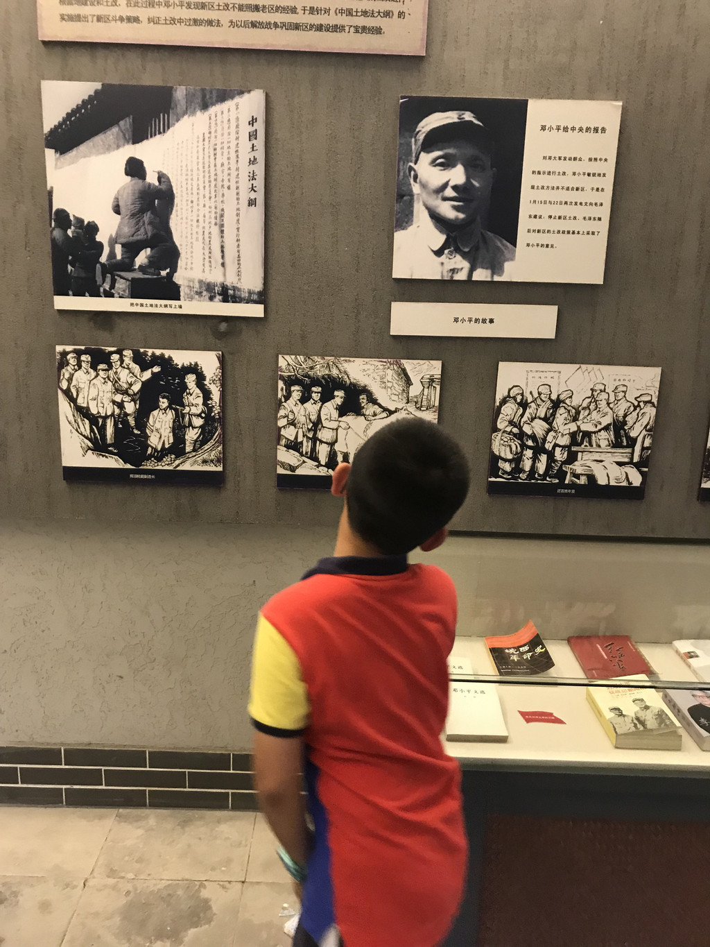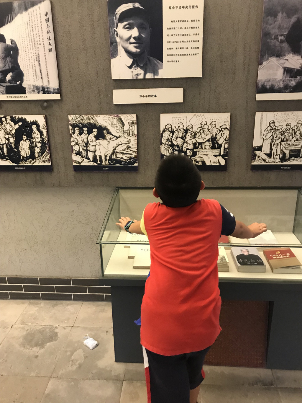 认真好学的龙太子,仔细观看刘邓大军千里跃进大别山的事迹介绍