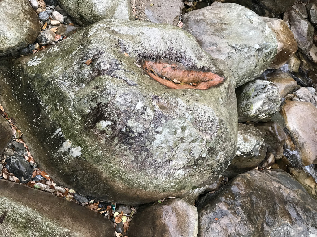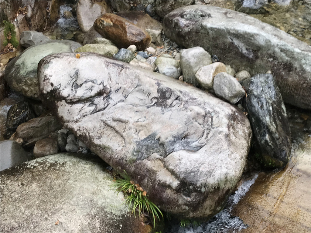条形的石块,横卧山涧