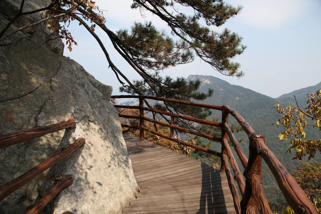 通往天池和天堂寨山顶的栈道